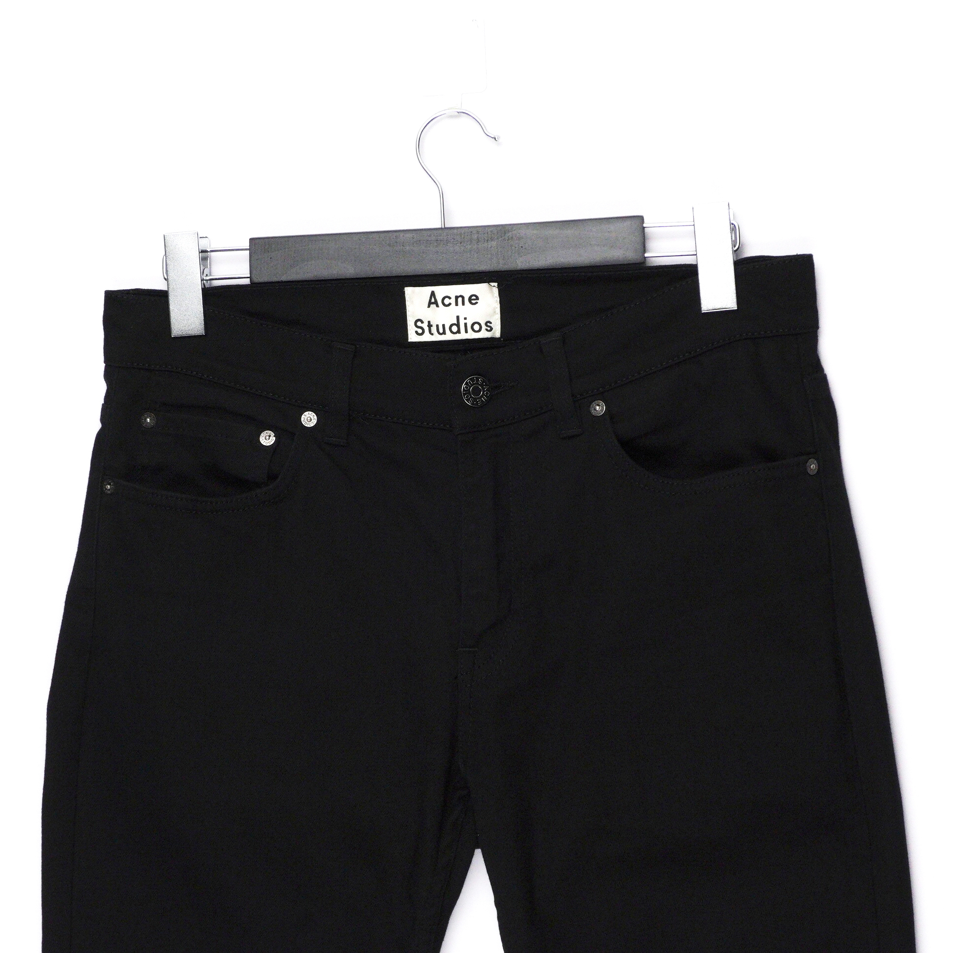These Acne Studios jeans are a clean expression of Scandinavian minimalism and modern tailoring. Crafted from premium black stretch denim, they feature a sleek slim-fit silhouette that offers both structure and comfort. The timeless five-pocket design and refined construction make them an effortless essential for everyday wear, easily transitioning from casual outfits to elevated looks.