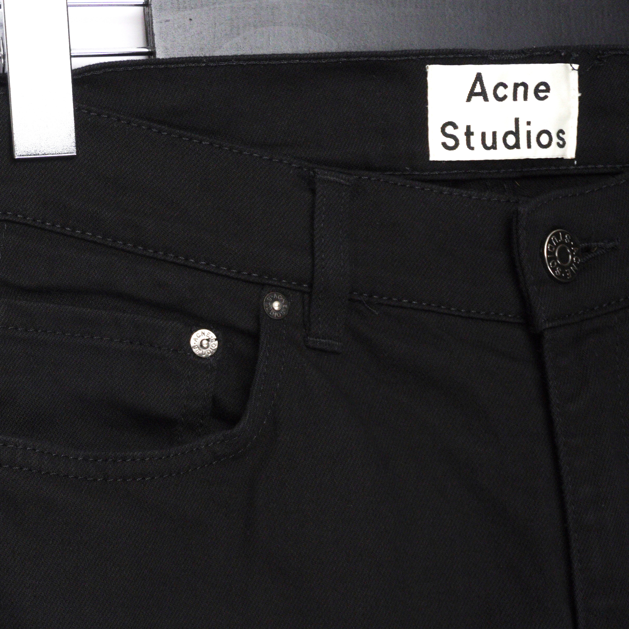 These Acne Studios jeans are a clean expression of Scandinavian minimalism and modern tailoring. Crafted from premium black stretch denim, they feature a sleek slim-fit silhouette that offers both structure and comfort. The timeless five-pocket design and refined construction make them an effortless essential for everyday wear, easily transitioning from casual outfits to elevated looks.