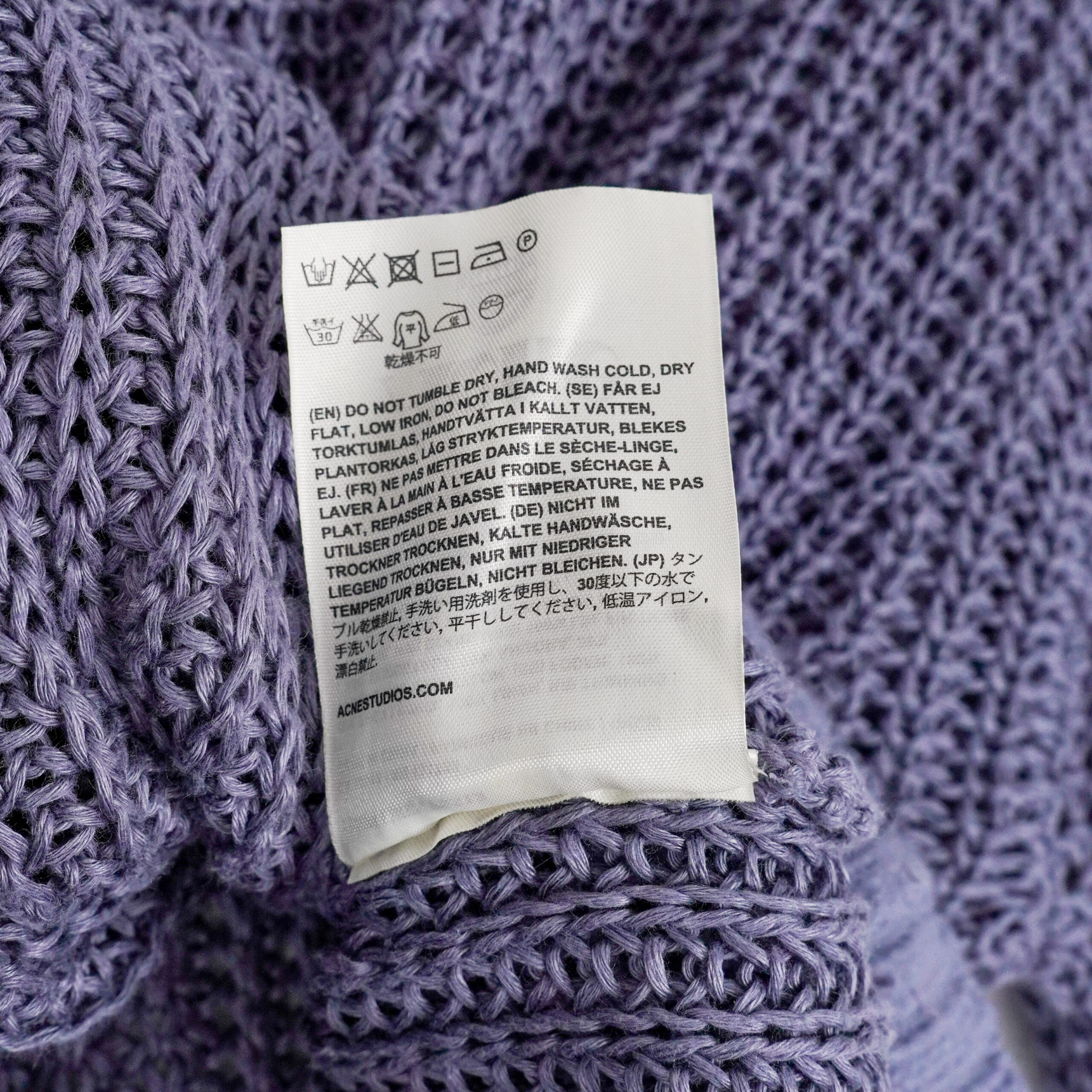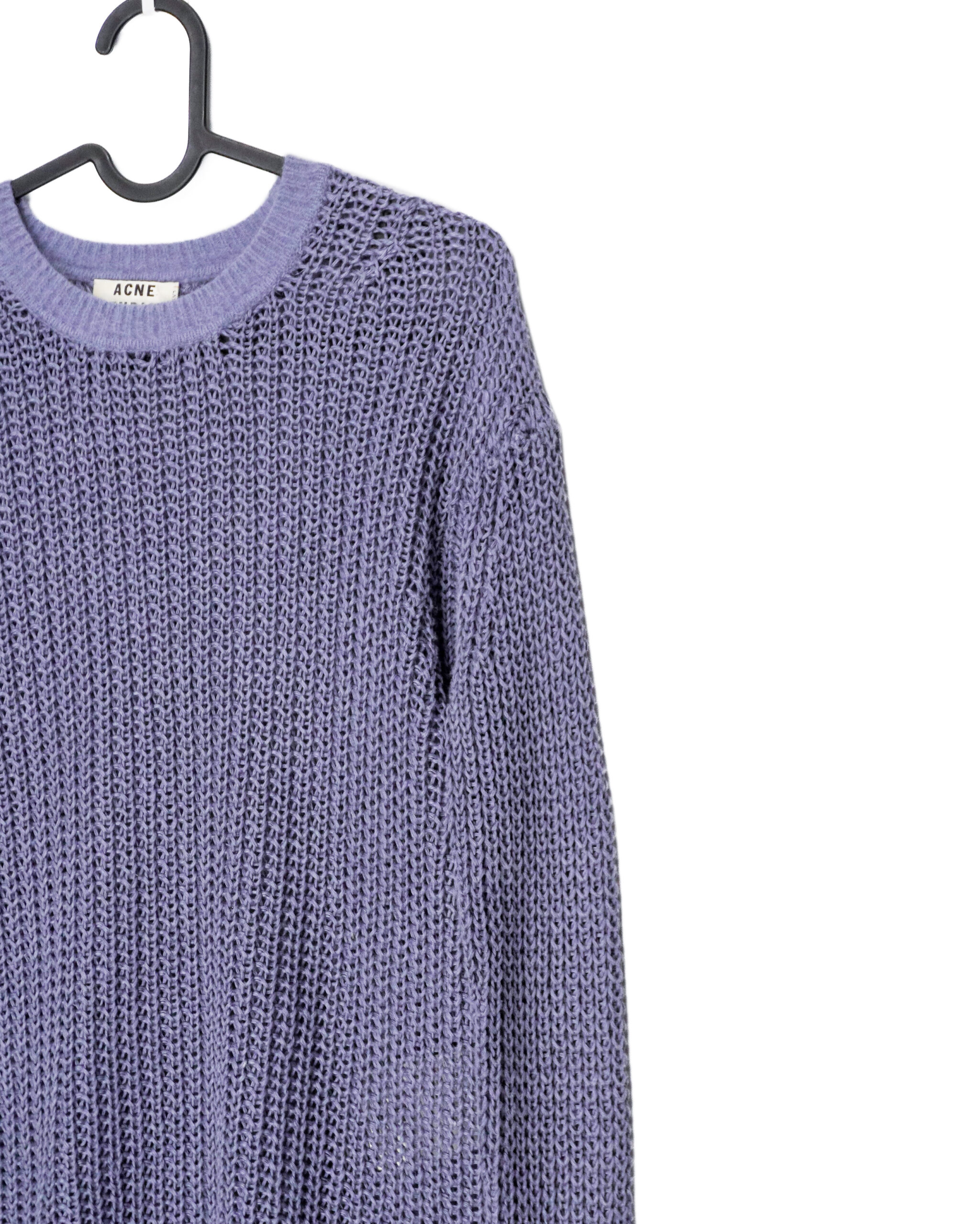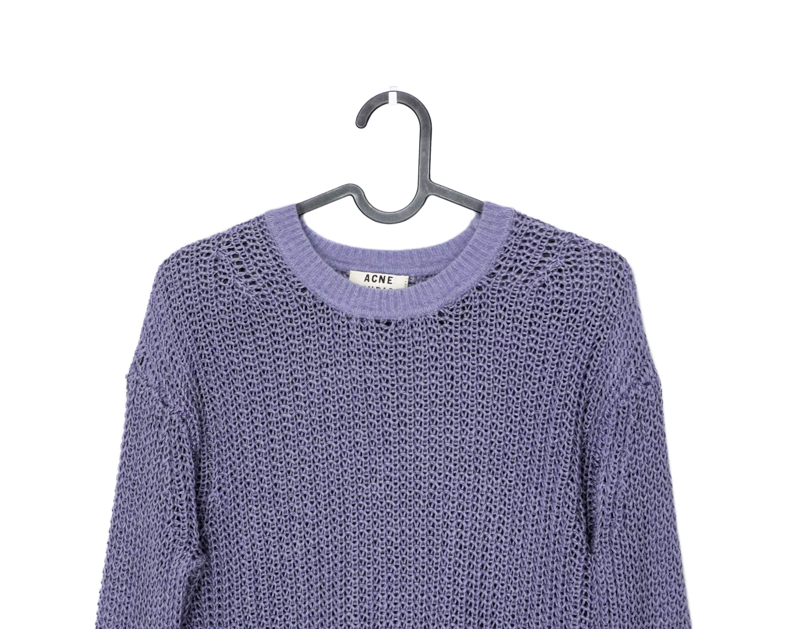 This lightweight open-knit sweater is a perfect example of relaxed minimalism with a refined touch. Crafted from a soft linen blend with angora and nylon ribbed trims, it features a slightly sheer texture that creates an airy, modern silhouette. The lavender tone adds a subtle pop of color while maintaining an understated aesthetic — ideal for layering across seasons or wearing on its own for a clean, effortless look.