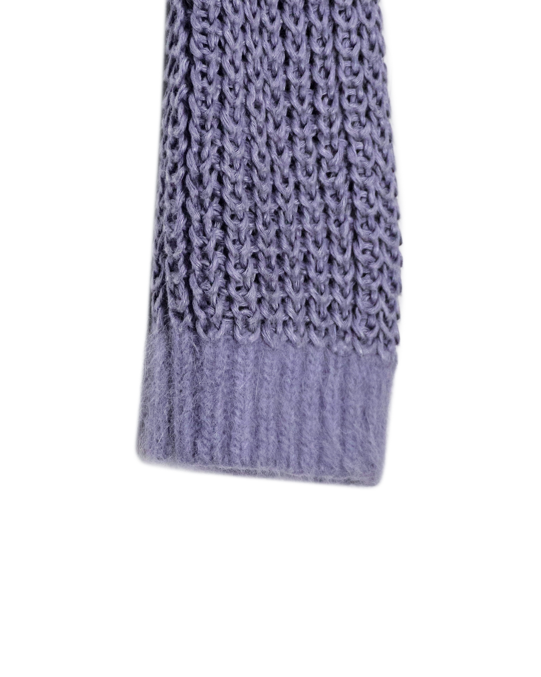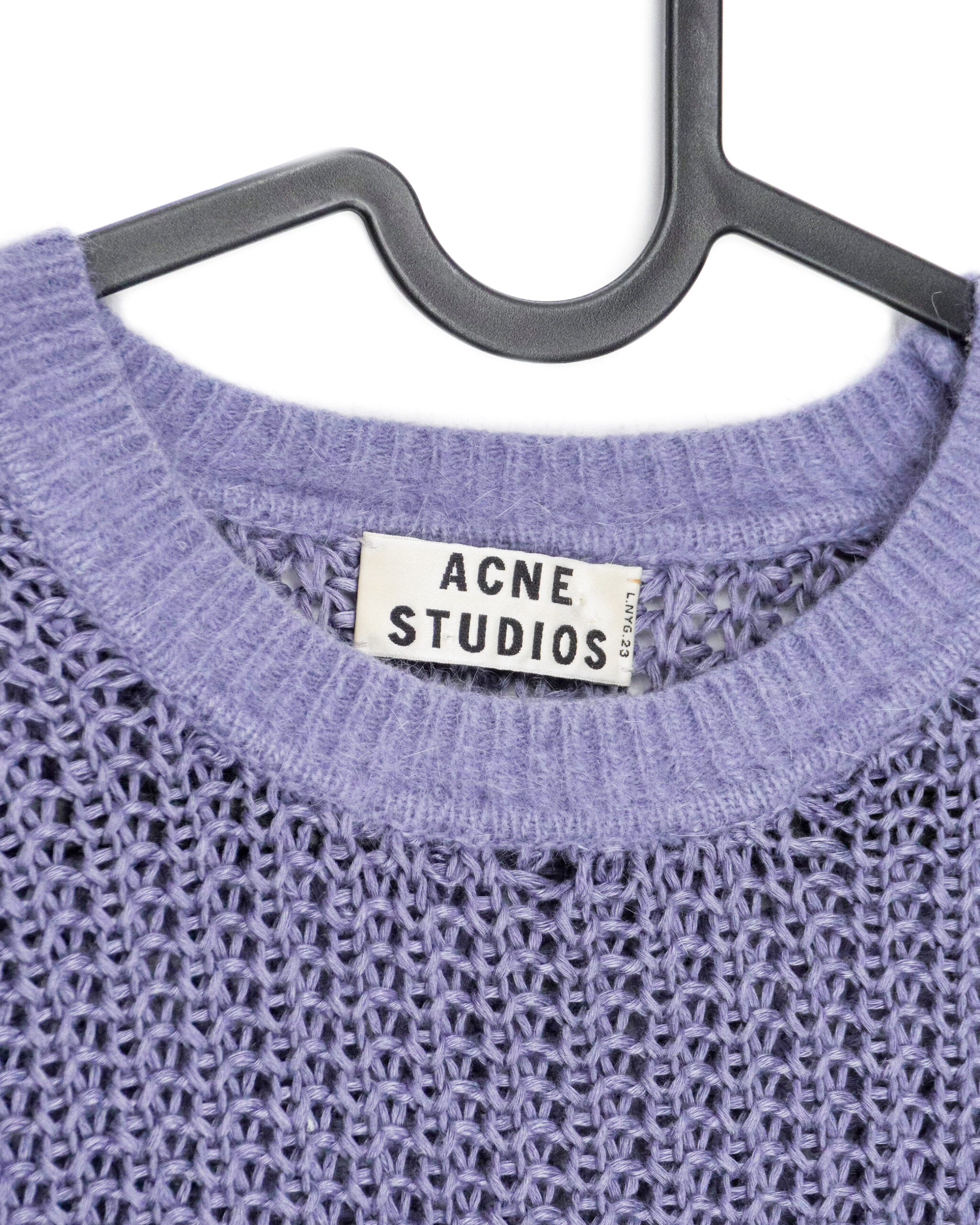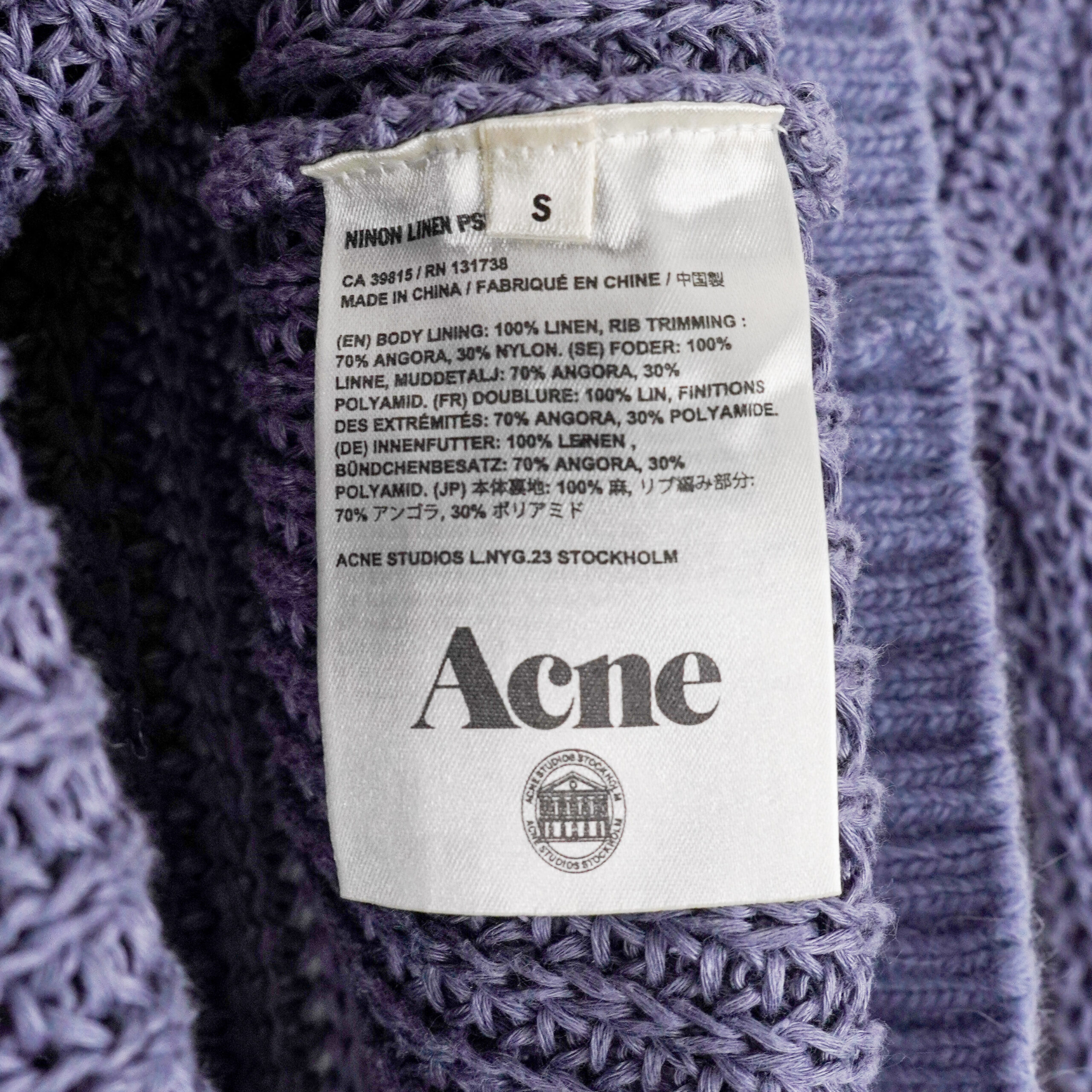 This lightweight open-knit sweater is a perfect example of relaxed minimalism with a refined touch. Crafted from a soft linen blend with angora and nylon ribbed trims, it features a slightly sheer texture that creates an airy, modern silhouette. The lavender tone adds a subtle pop of color while maintaining an understated aesthetic — ideal for layering across seasons or wearing on its own for a clean, effortless look.