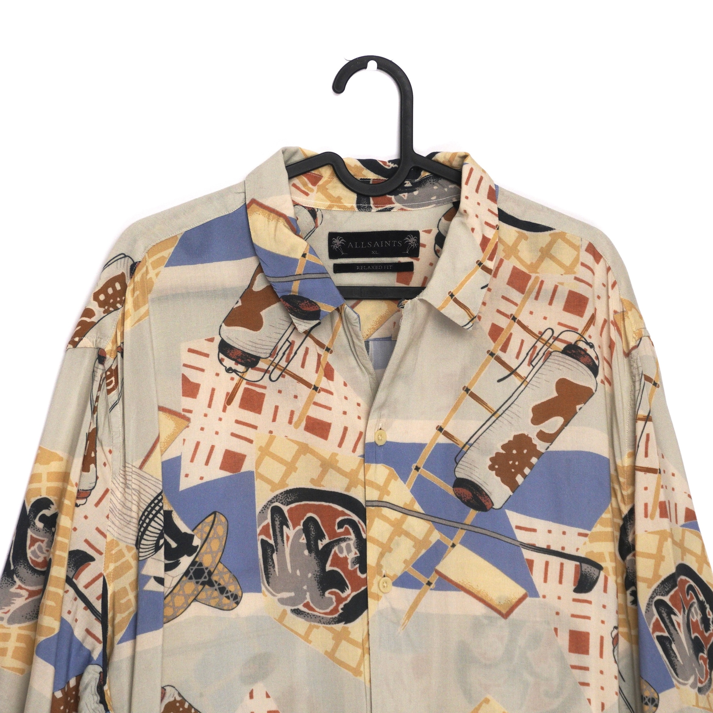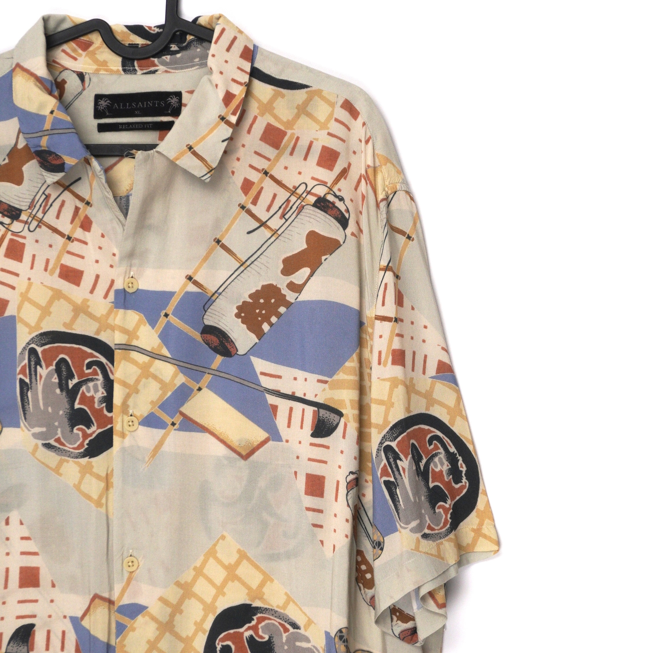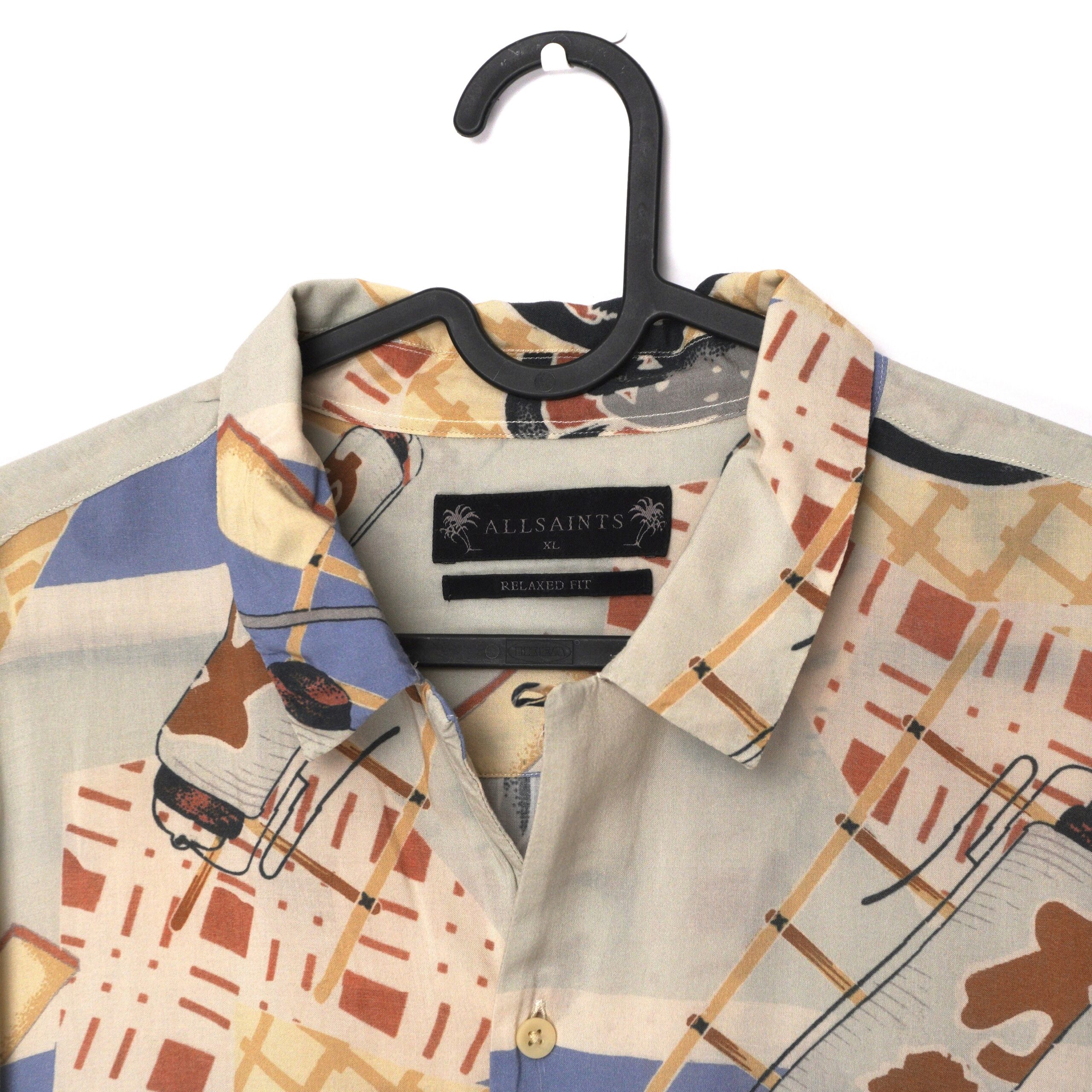 This AllSaints shirt captures the brand’s effortless cool with a bold graphic print and relaxed silhouette. Crafted from lightweight premium viscose, it offers a soft drape and breathable comfort, perfect for layering or wearing on its own. The oversized cut and playful all-over pattern lend a distinct vintage-inspired edge, embodying AllSaints’ contemporary yet timeless style.