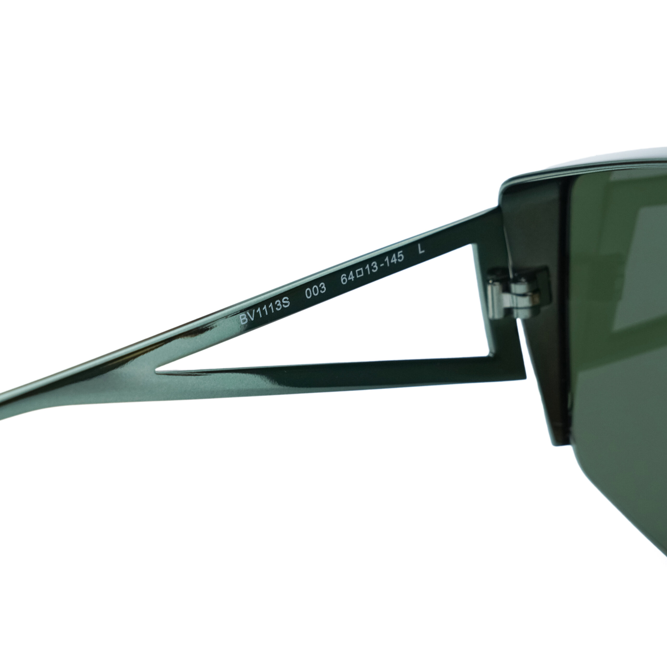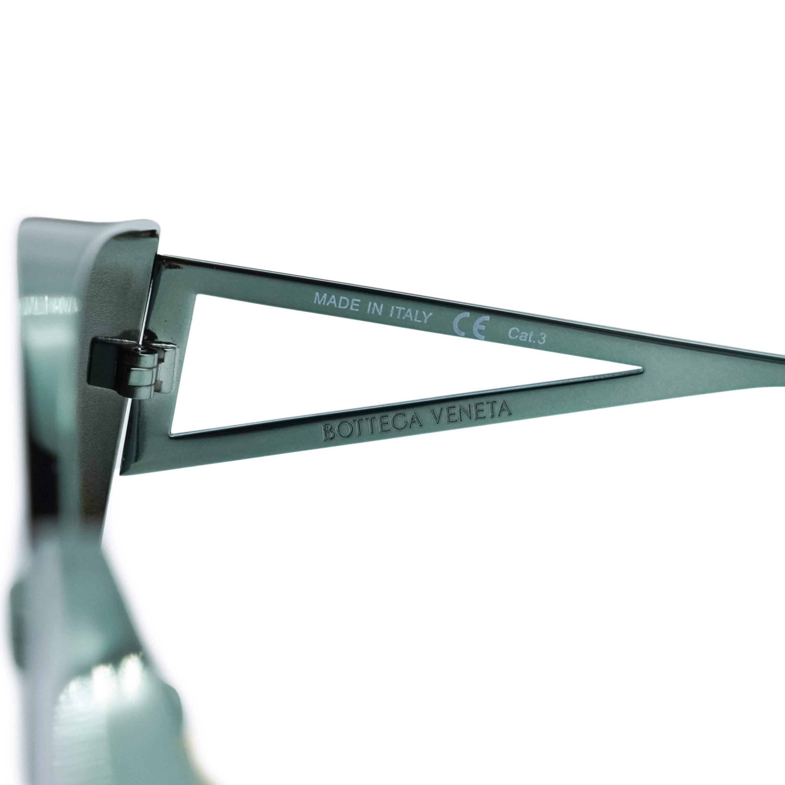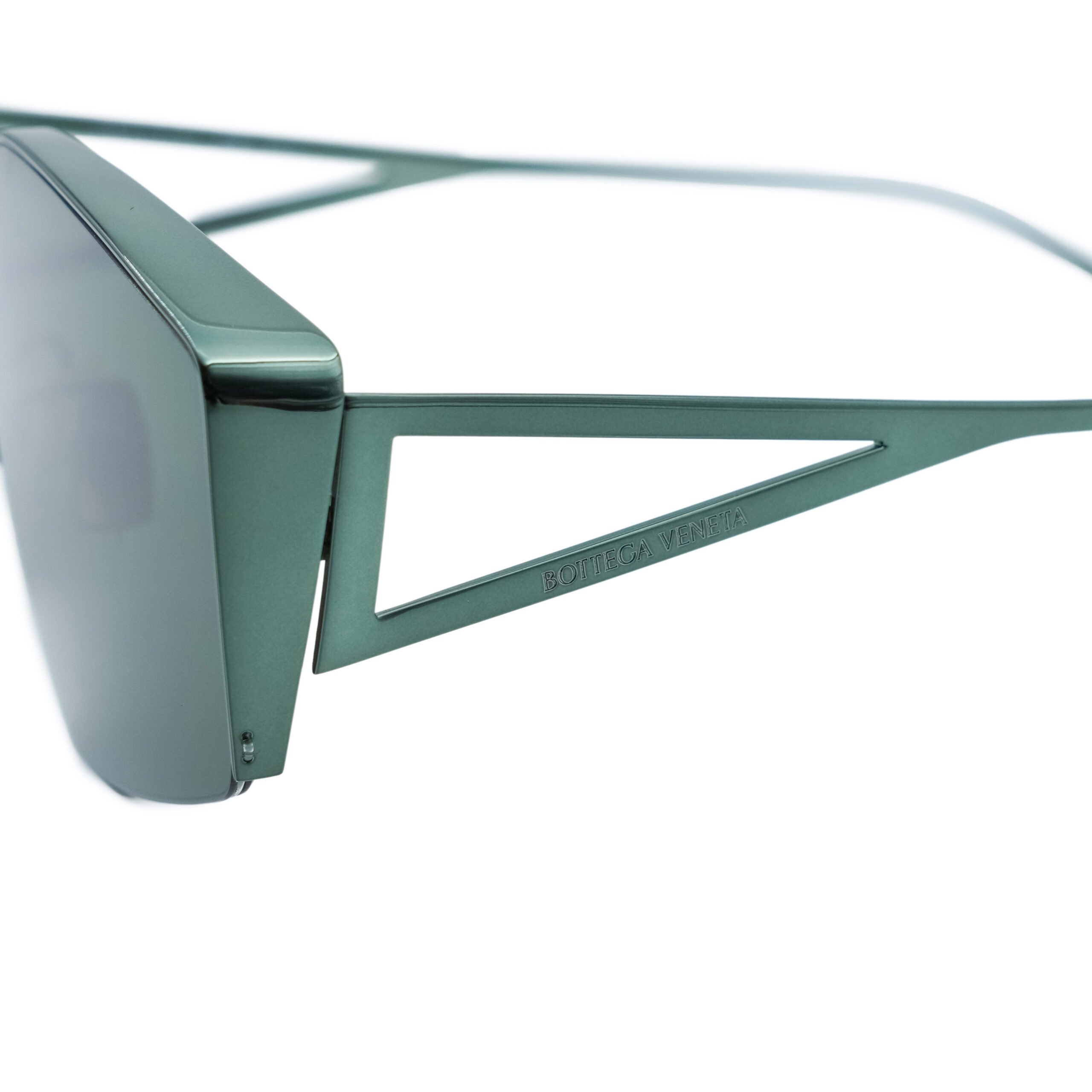 • Triangular cut-out temples with engraved branding