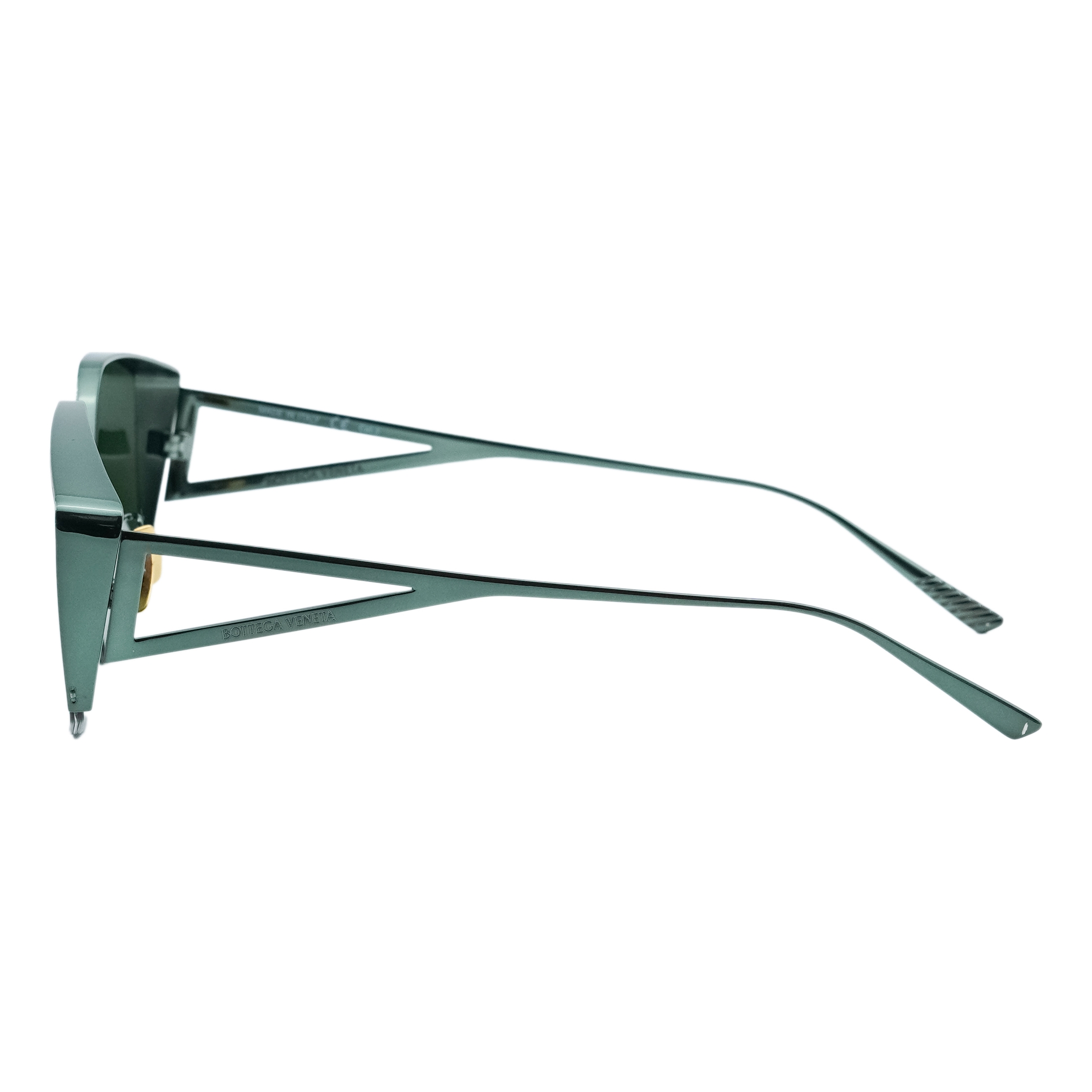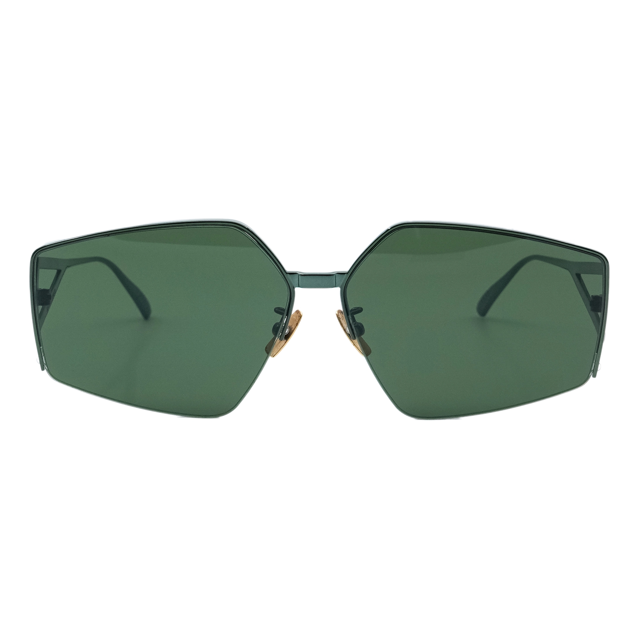These Bottega Veneta sunglasses embody bold Italian design with a modern, architectural twist. Featuring oversized geometric lenses and a striking angular frame, they make a strong statement while ensuring premium sun protection. The unique triangular cut-out temples engraved with the Bottega Veneta logo highlight the brand’s dedication to craftsmanship and innovation. Perfect for those who value fashion-forward accessories with a luxury edge.