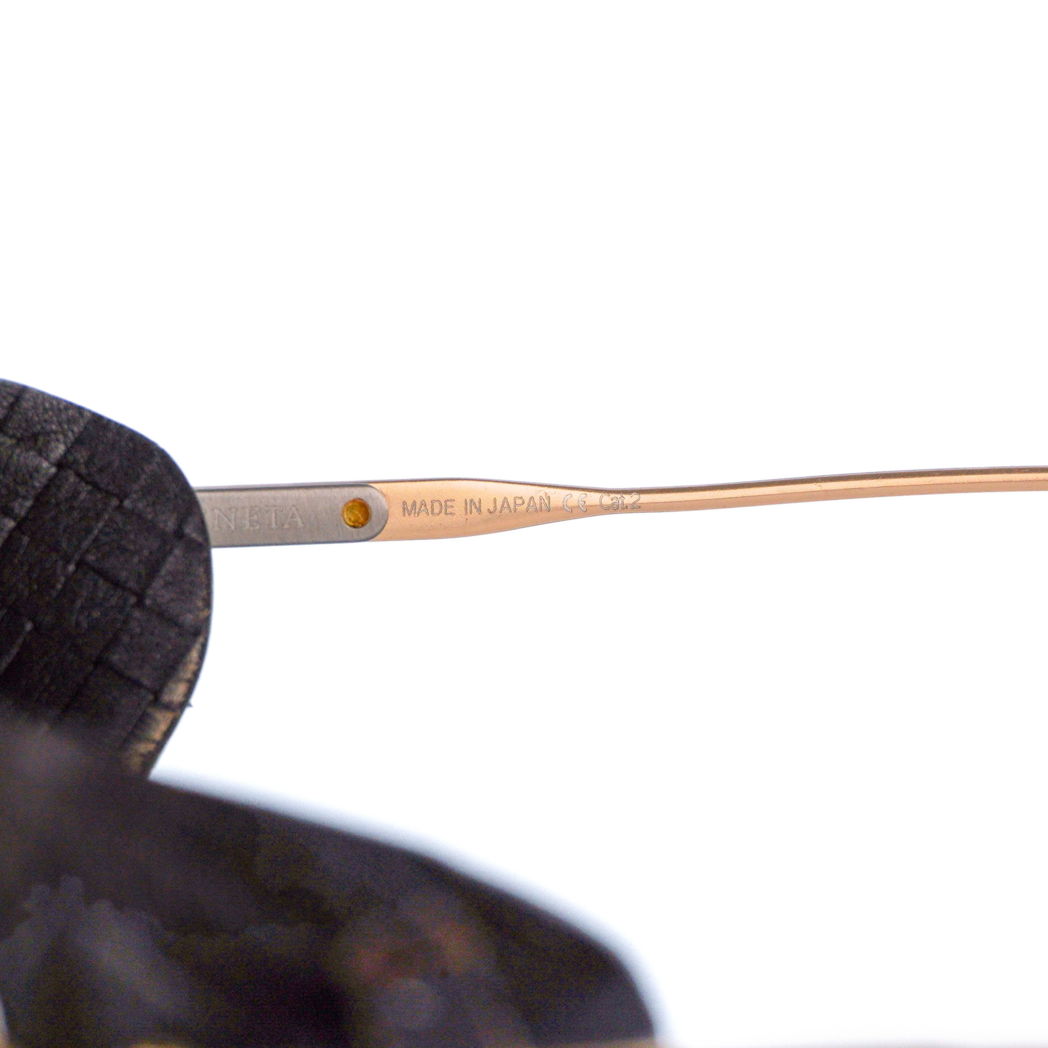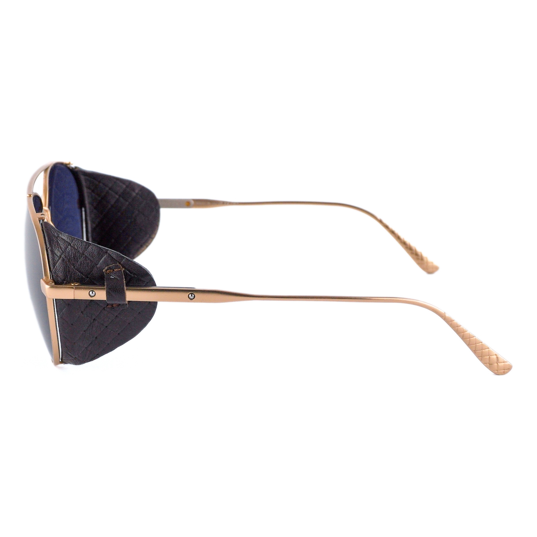 • Color: Gold frame / Blue lenses / Black leather side shields