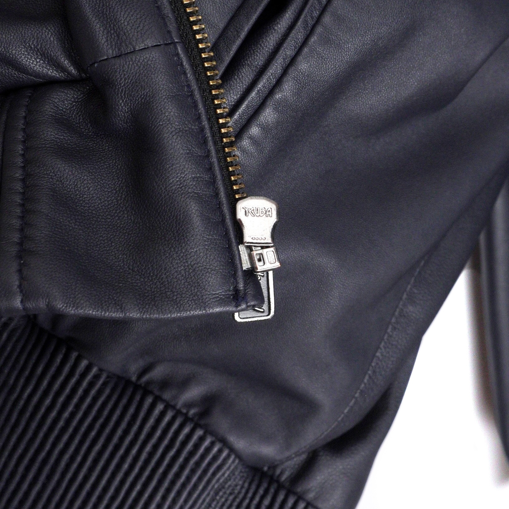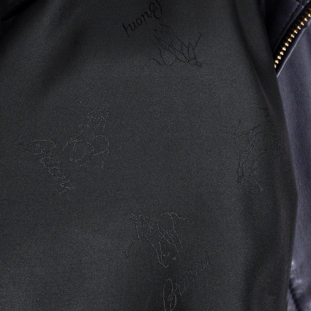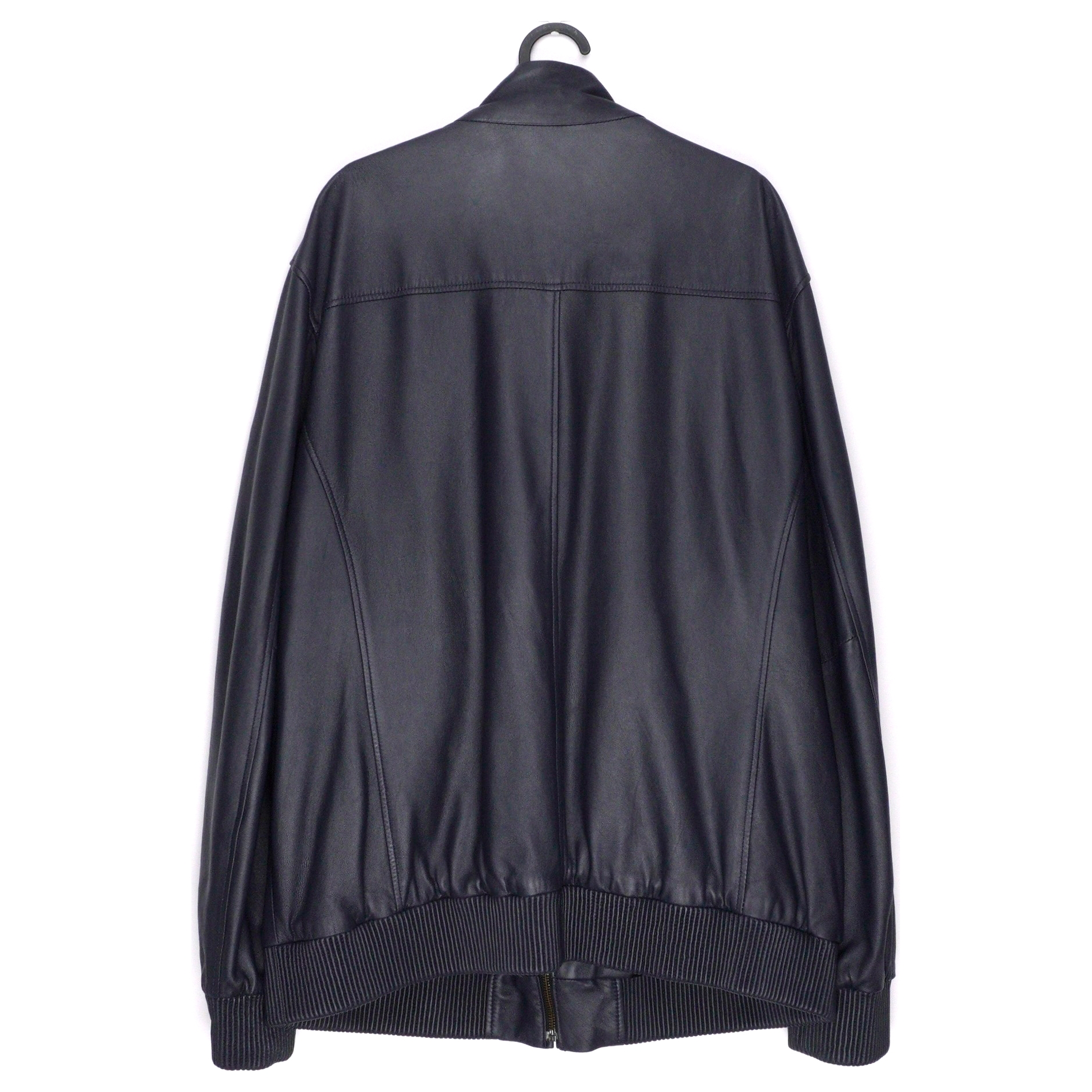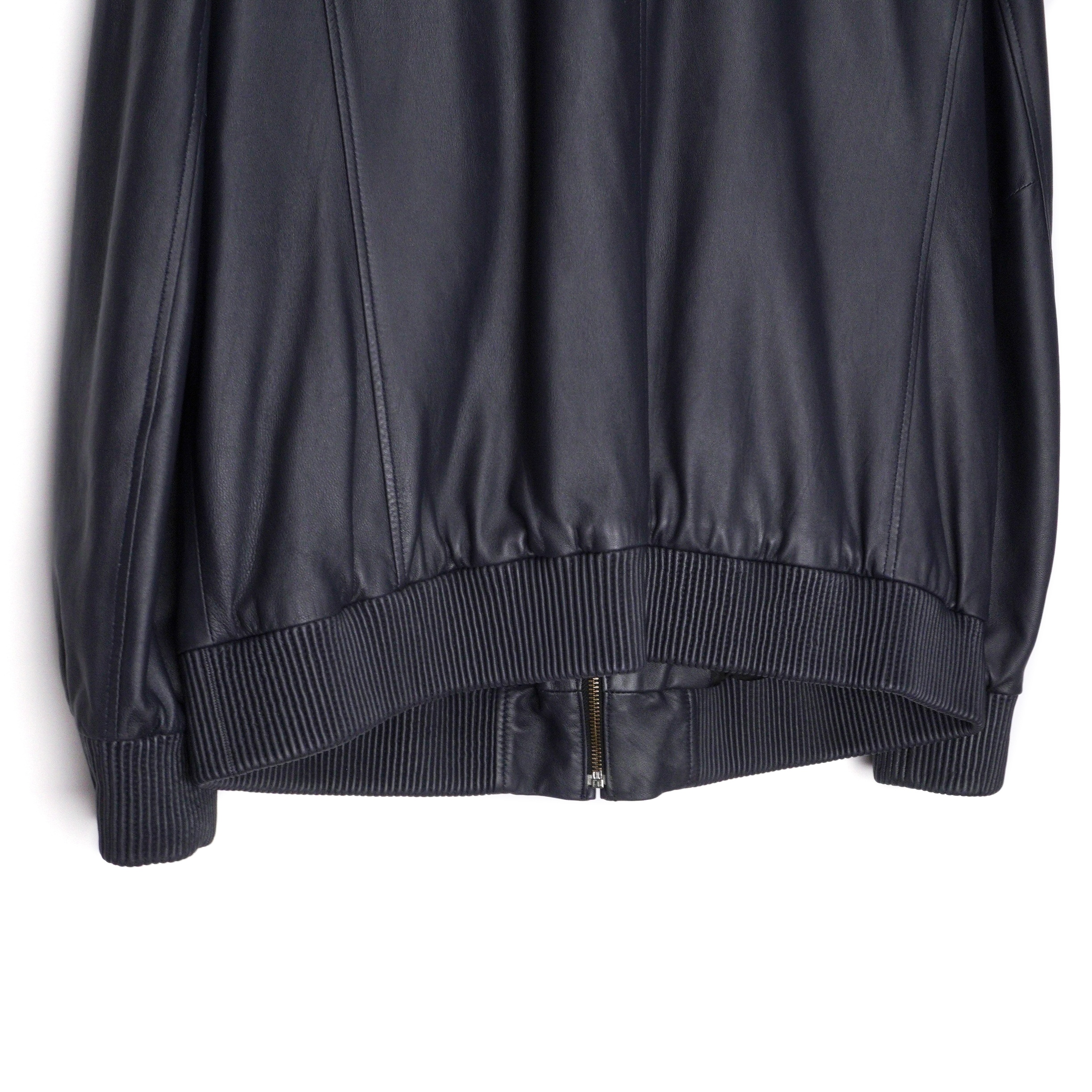 Brioni Navy Blue Metal Logo Leather Bomber Jacket