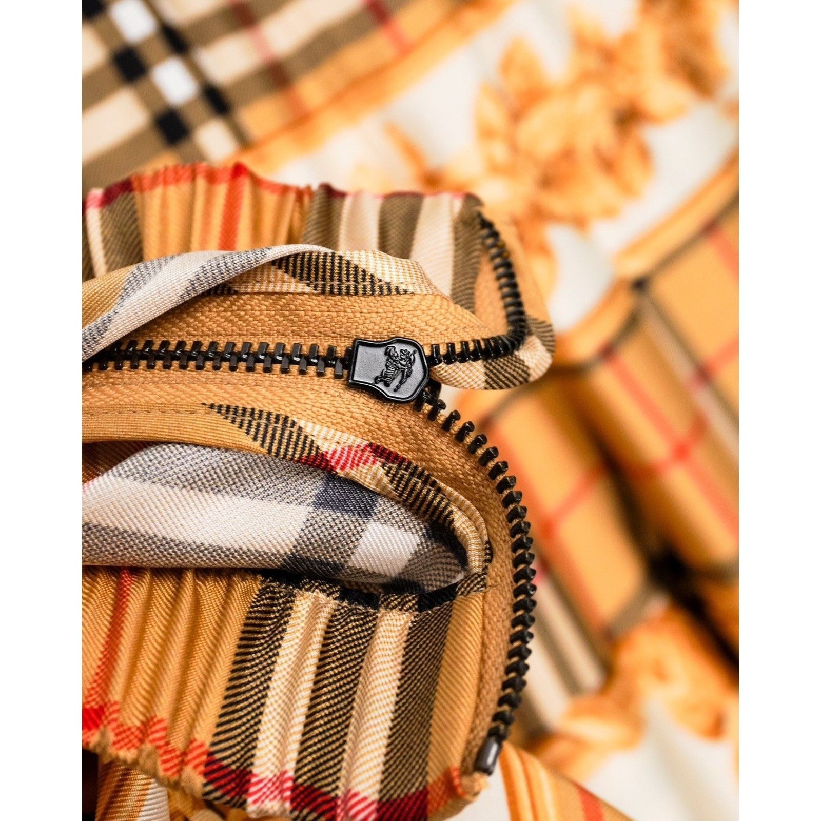 • All-over Burberry check with floral print accents