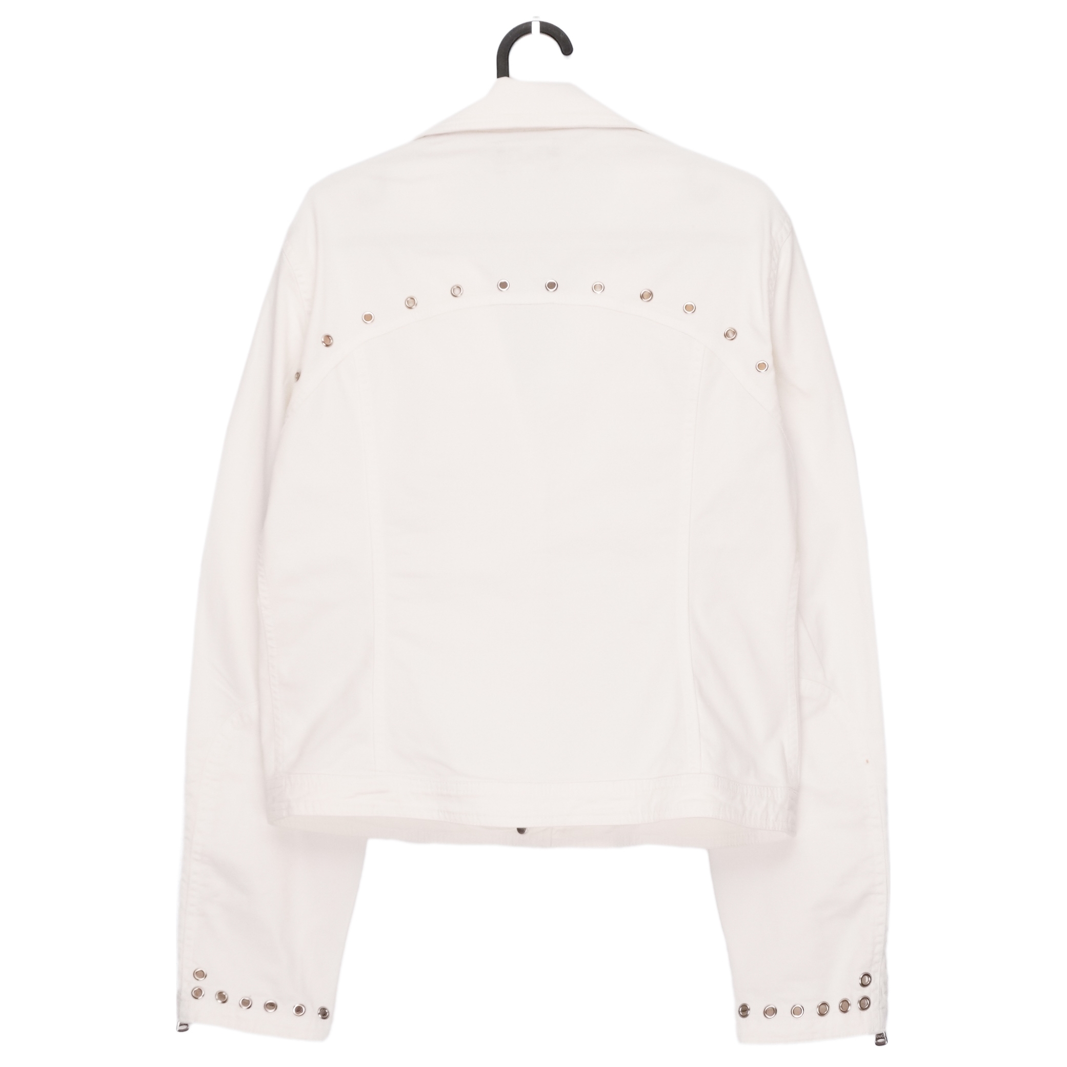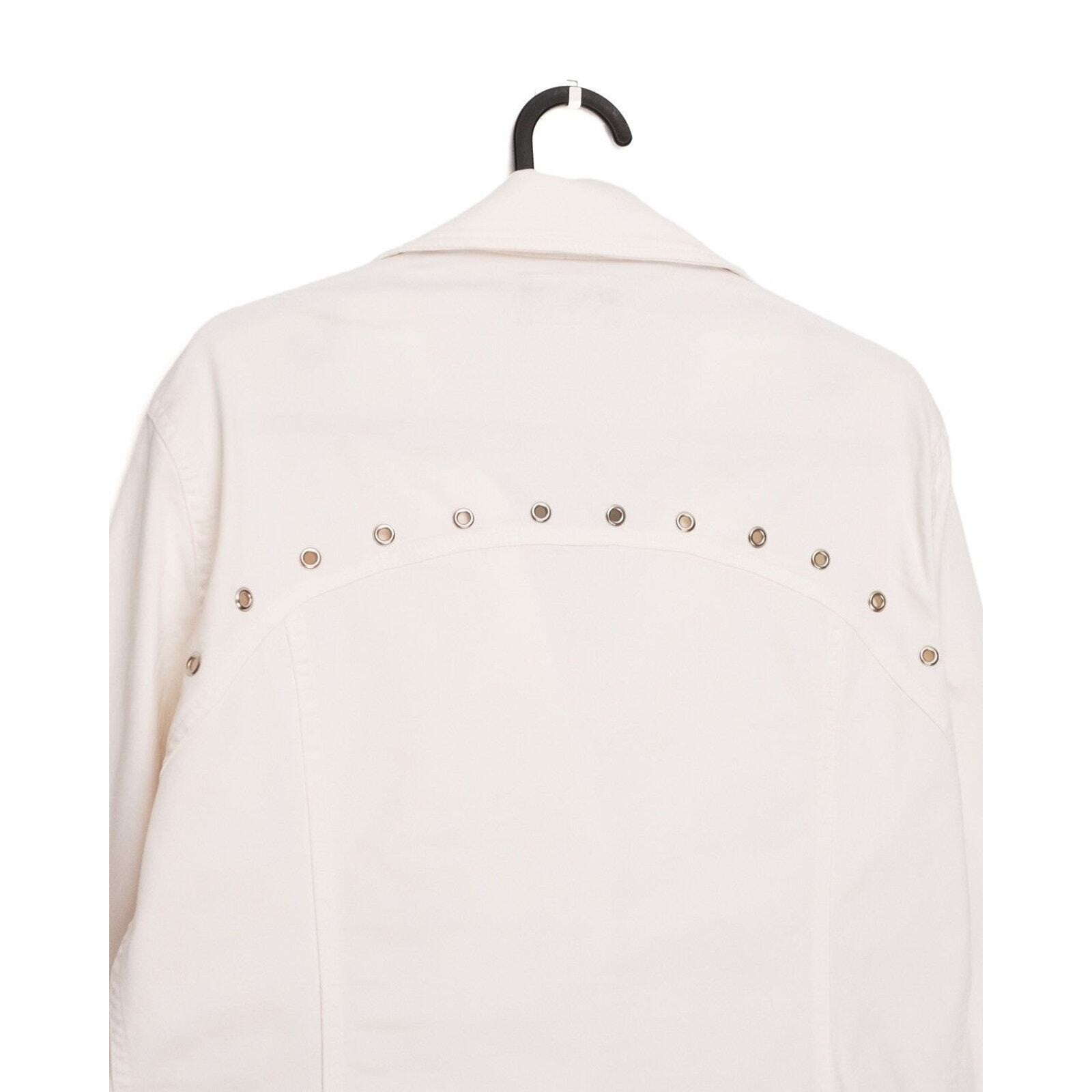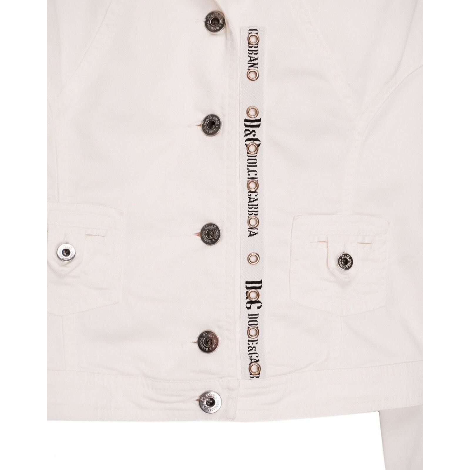 This D&G Dolce & Gabbana jacket is a standout example of bold Italian design. Made from structured white cotton with metal hardware detailing, it blends a biker-inspired silhouette with the clean, crisp look of luxury casualwear. Signature branded grommets, button details, and a tailored cut give the piece a distinctive and elevated edge. Perfect for adding statement character to everyday outfits or enhancing a refined streetwear look.