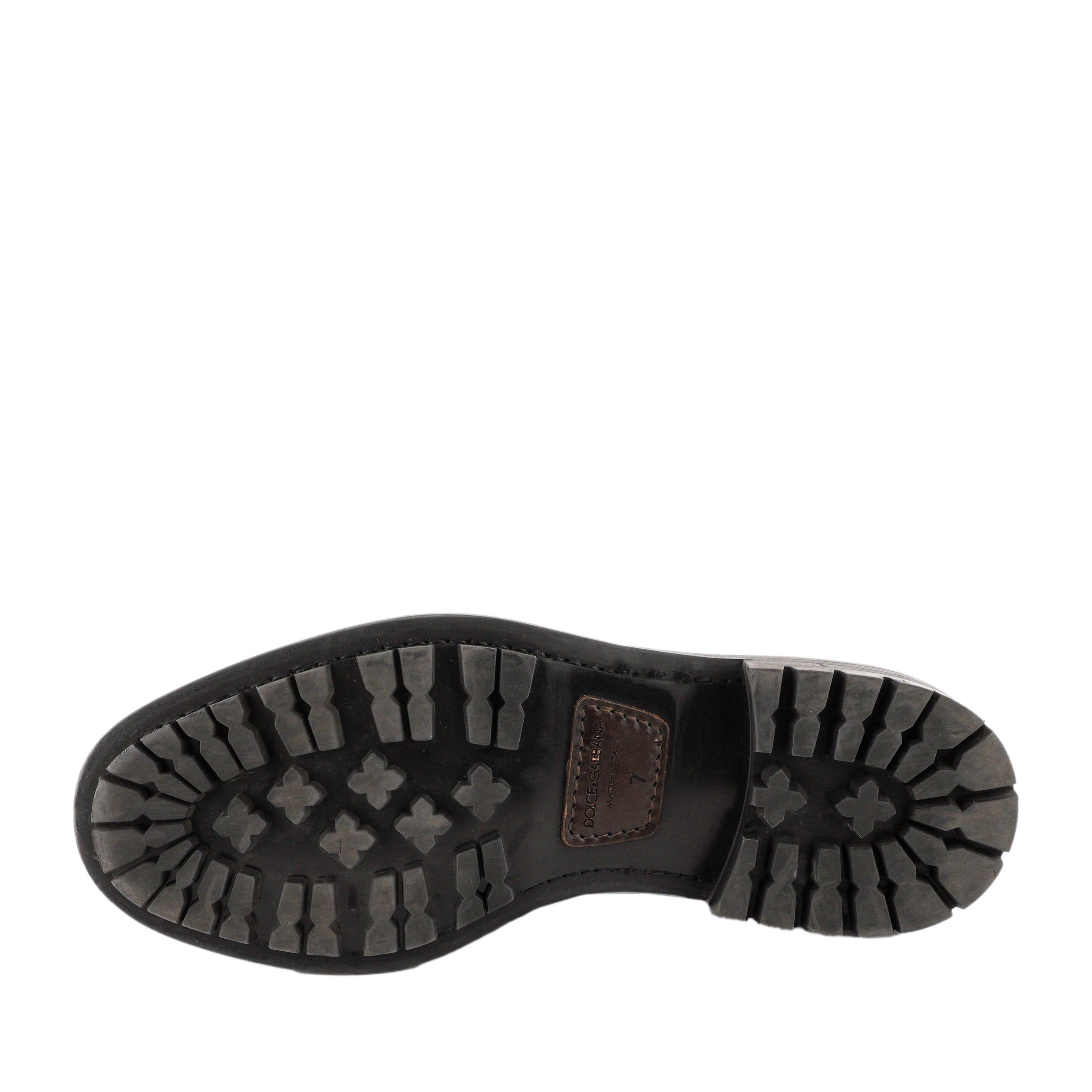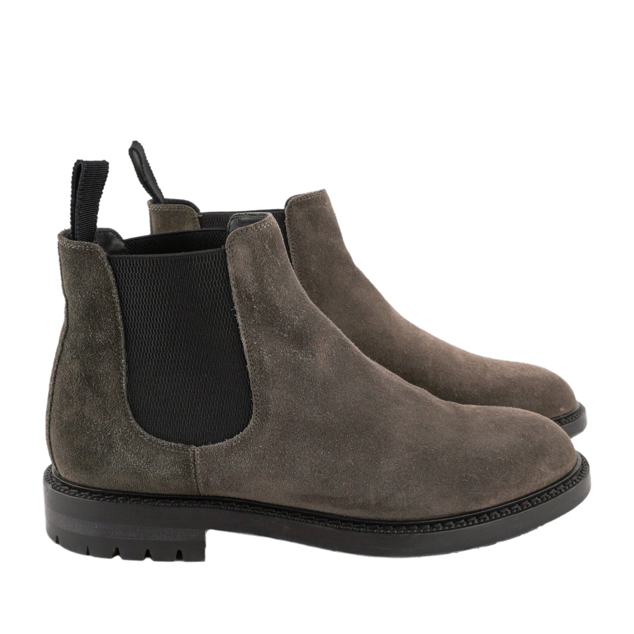 These Dolce & Gabbana Chelsea boots are crafted in supple gray suede with a modern rugged sole. Featuring elastic side panels and back pull tabs, they combine easy wear with timeless style. A durable rubber tread sole ensures both comfort and traction, making them a versatile choice for smart-casual and everyday outfits.