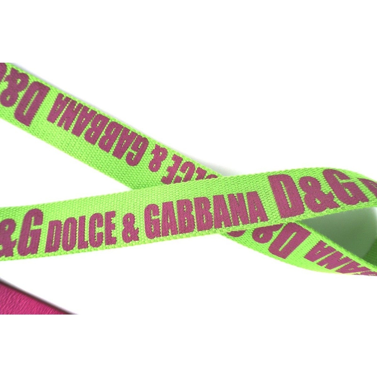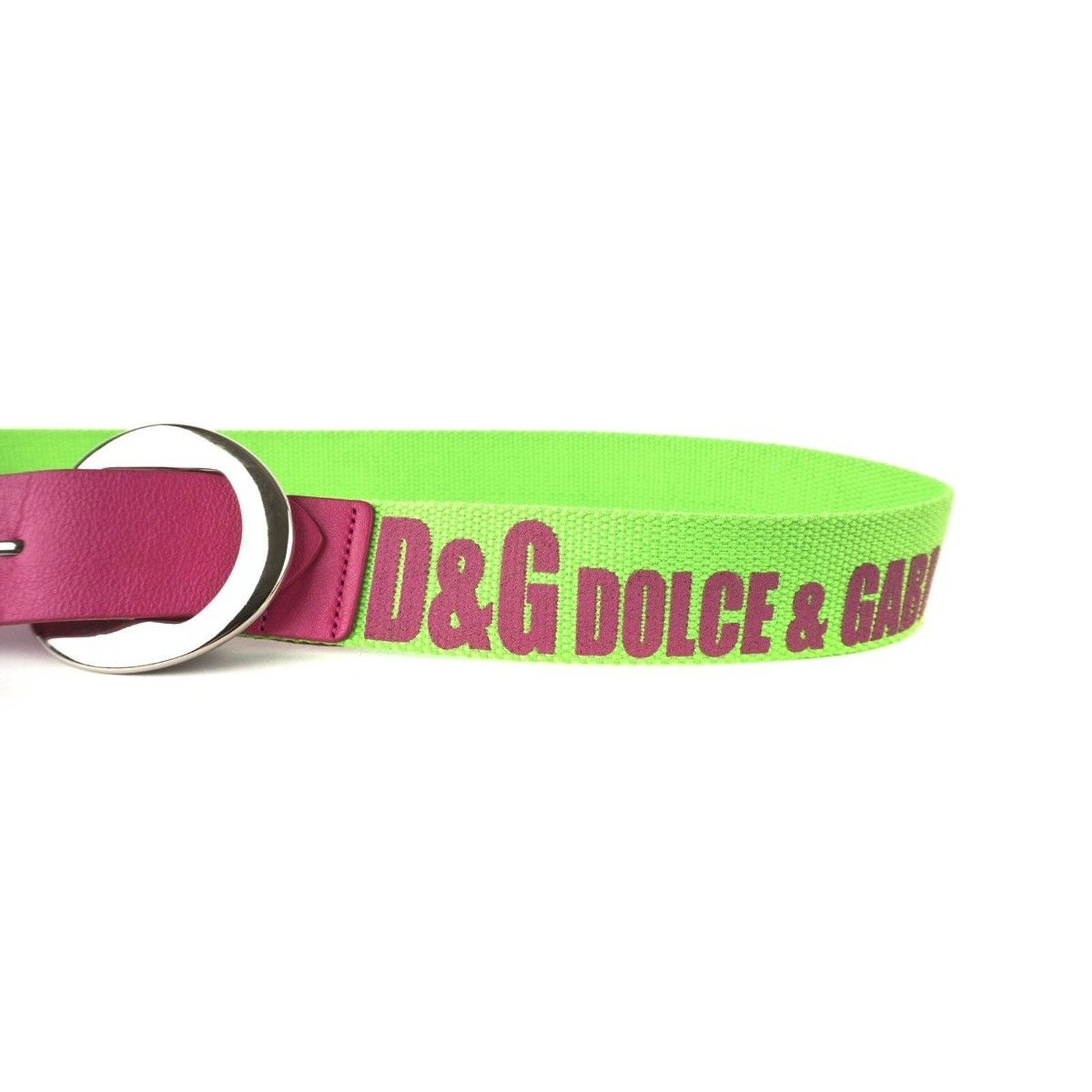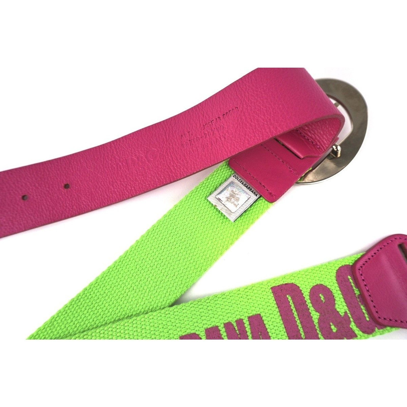 Dolce & Gabbana Logo Green Pink Vintage Leather Canvas Belt