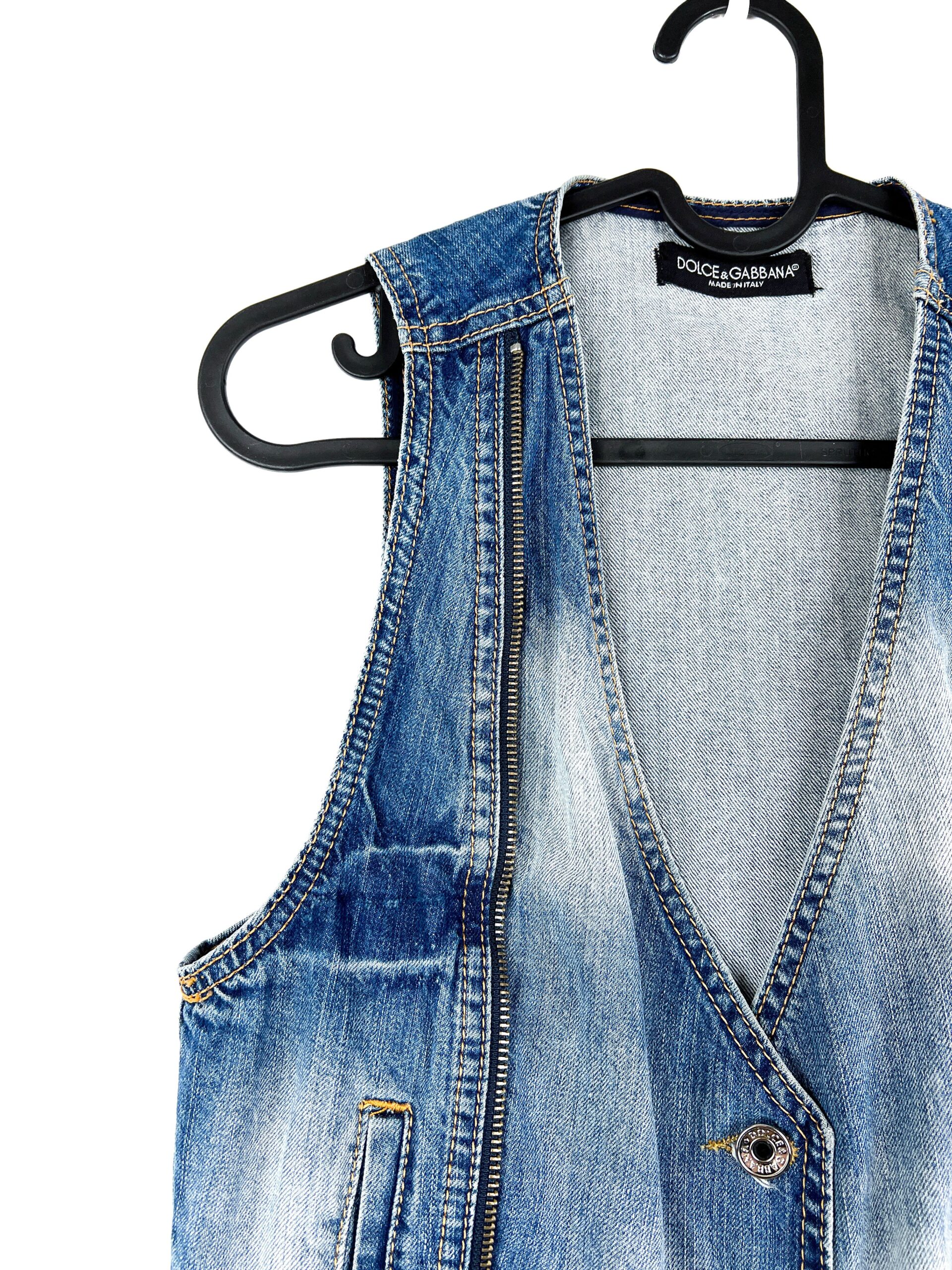 Dolce & Gabbana Multi Zip Women’s Vintage Denim Vest Jacket