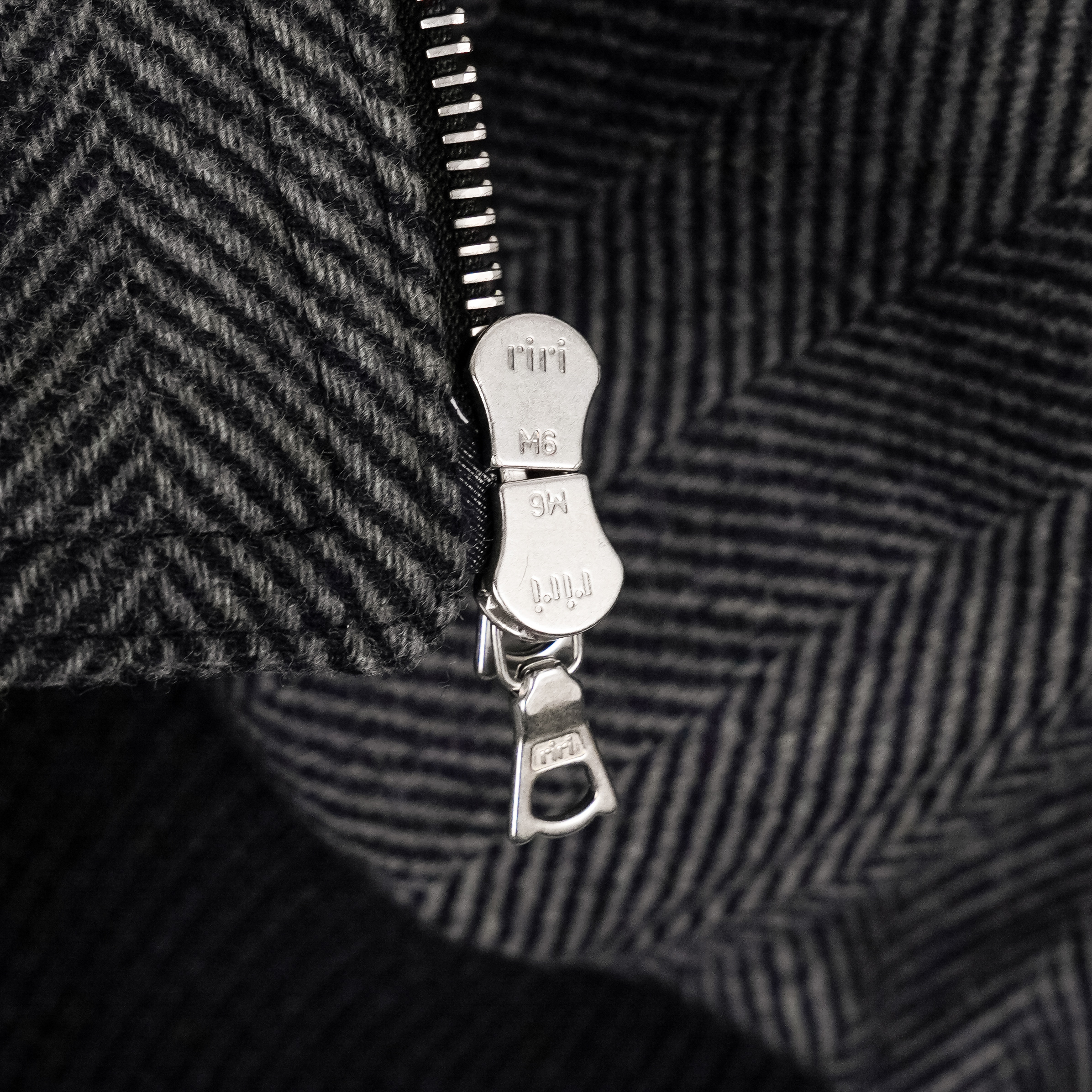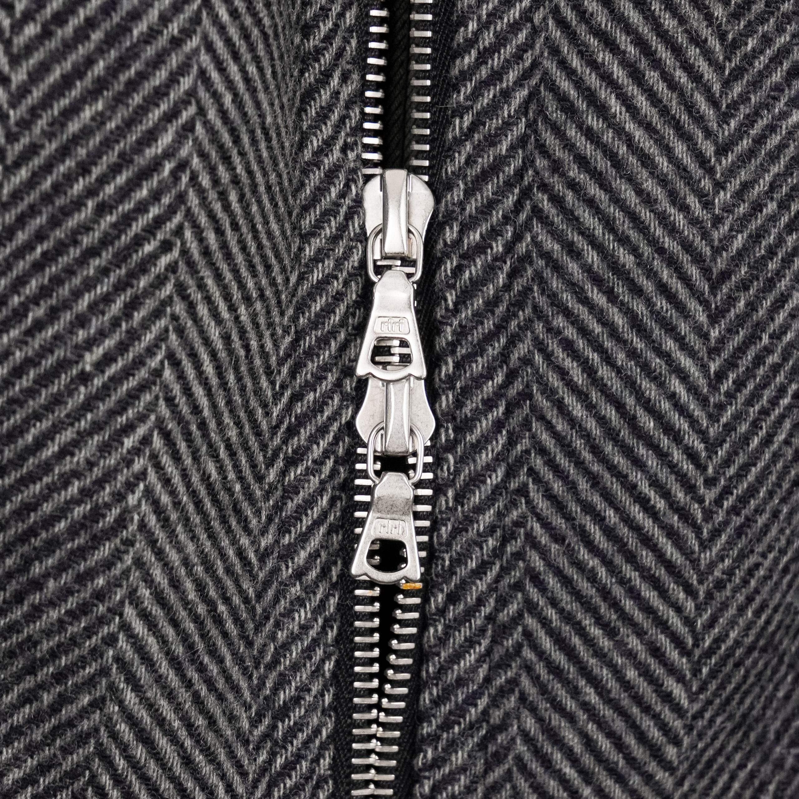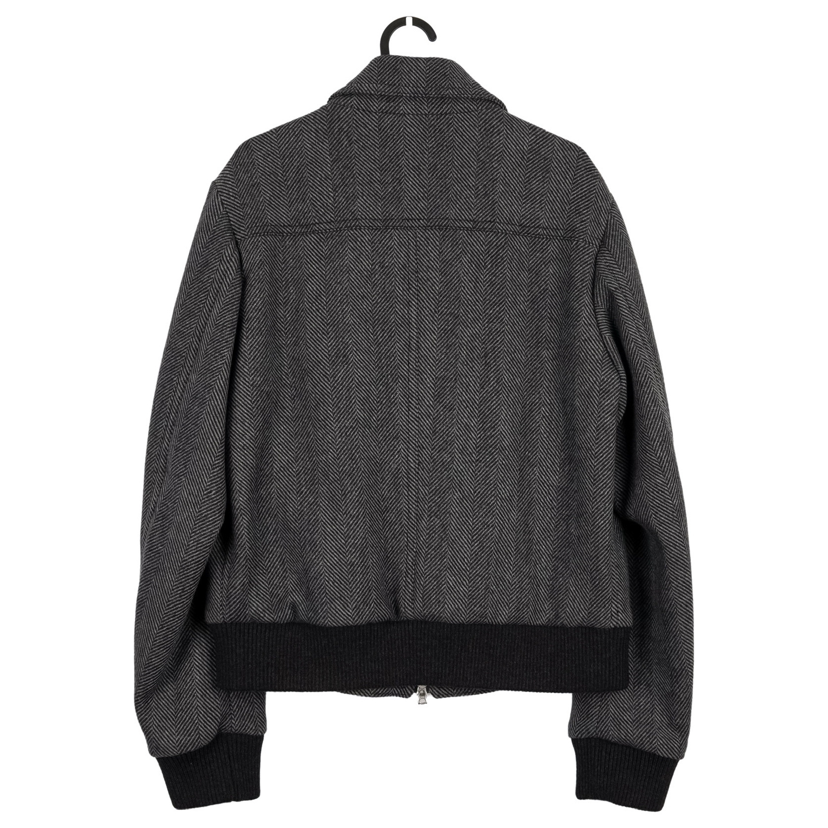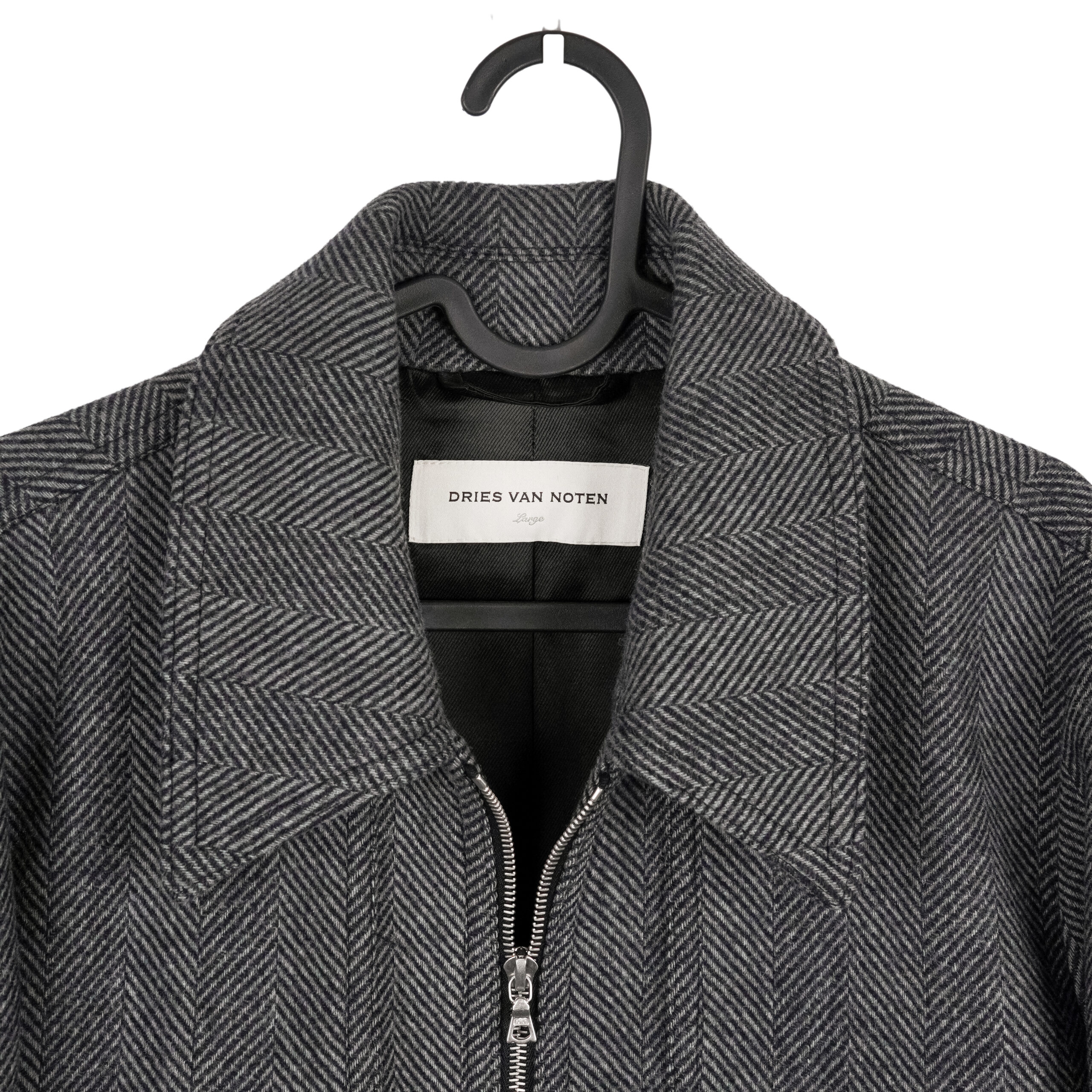 Dries Van Noten Mens Herringbone Wool Gray Zip Bomber Jacket