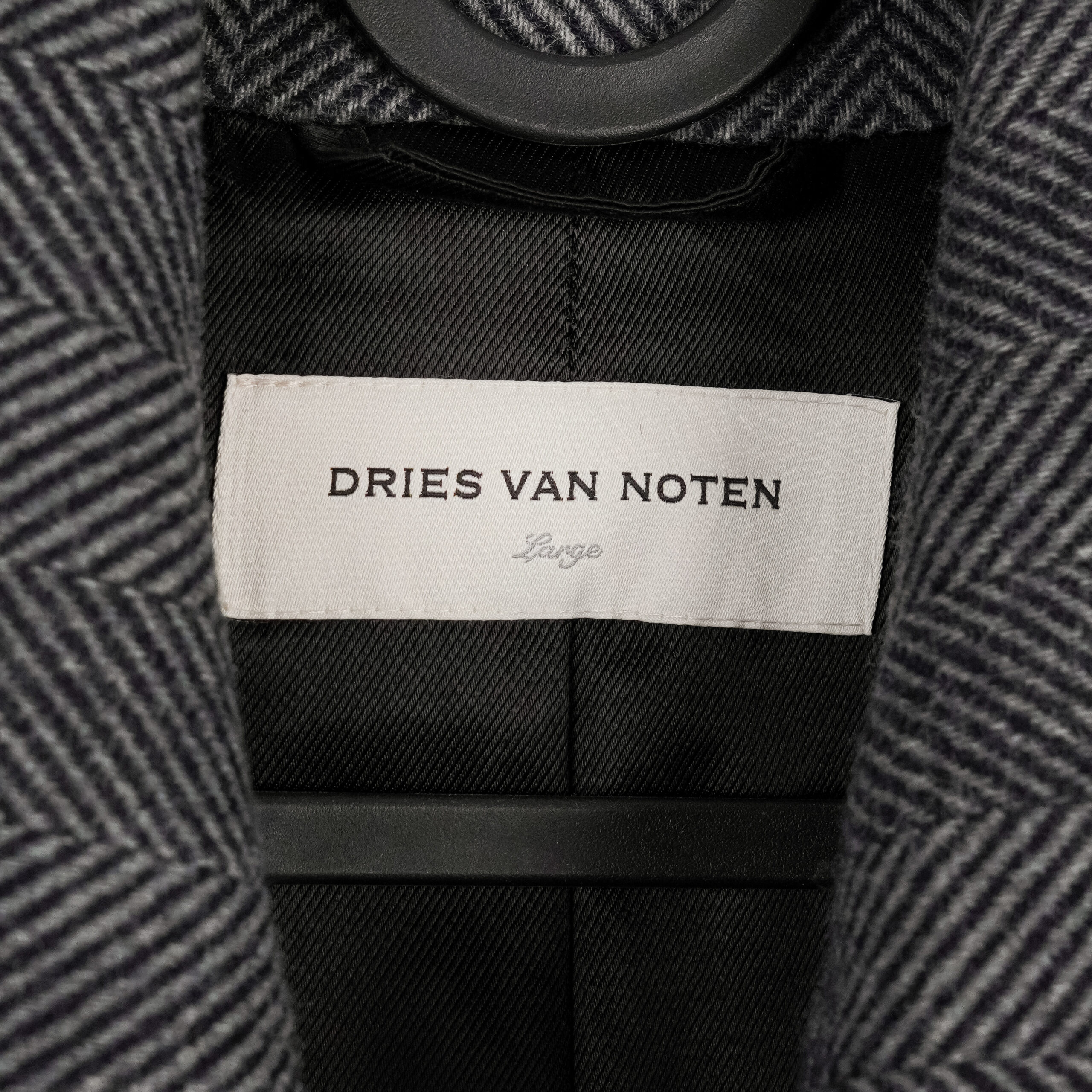 This modern bomber jacket by Dries Van Noten reimagines timeless tailoring with a subtle herringbone weave in rich gray wool. Featuring a structured silhouette, silver-tone zippers, and ribbed cuffs and hem, it blends effortless sophistication with everyday comfort. The heavyweight wool blend offers warmth without bulk, making it a perfect outer layer for transitional seasons or layering up in winter. Whether styled over a tee or layered for an evening out, this piece brings refined texture and Belgian minimalism to any modern wardrobe.