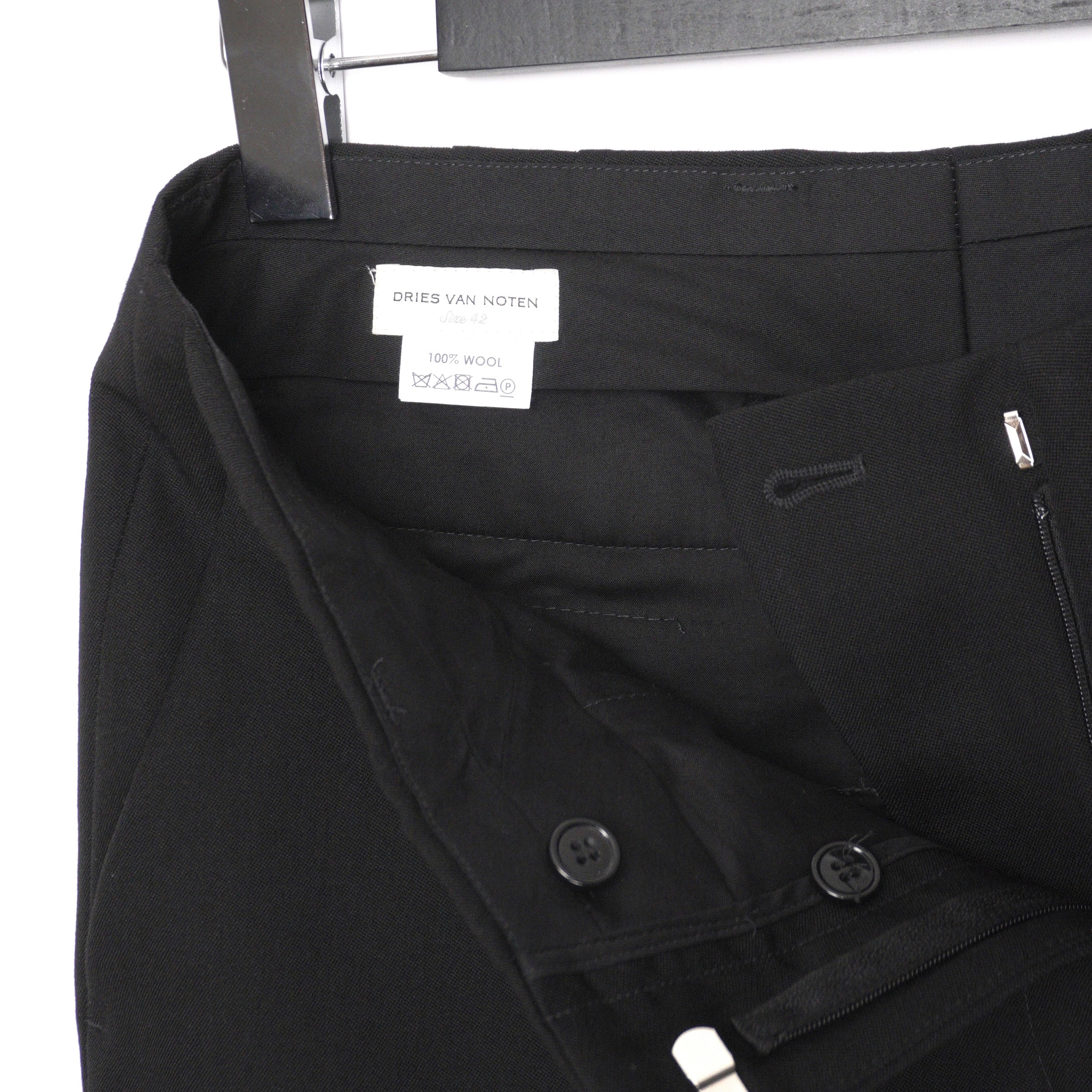 These Dries Van Noten trousers embody the brand’s signature approach to modern tailoring. Crafted from high-quality wool, they feature a clean, minimalist design with a straight-leg silhouette and refined construction. The timeless black color and understated detailing make them an essential wardrobe piece, suitable for both formal and contemporary looks.