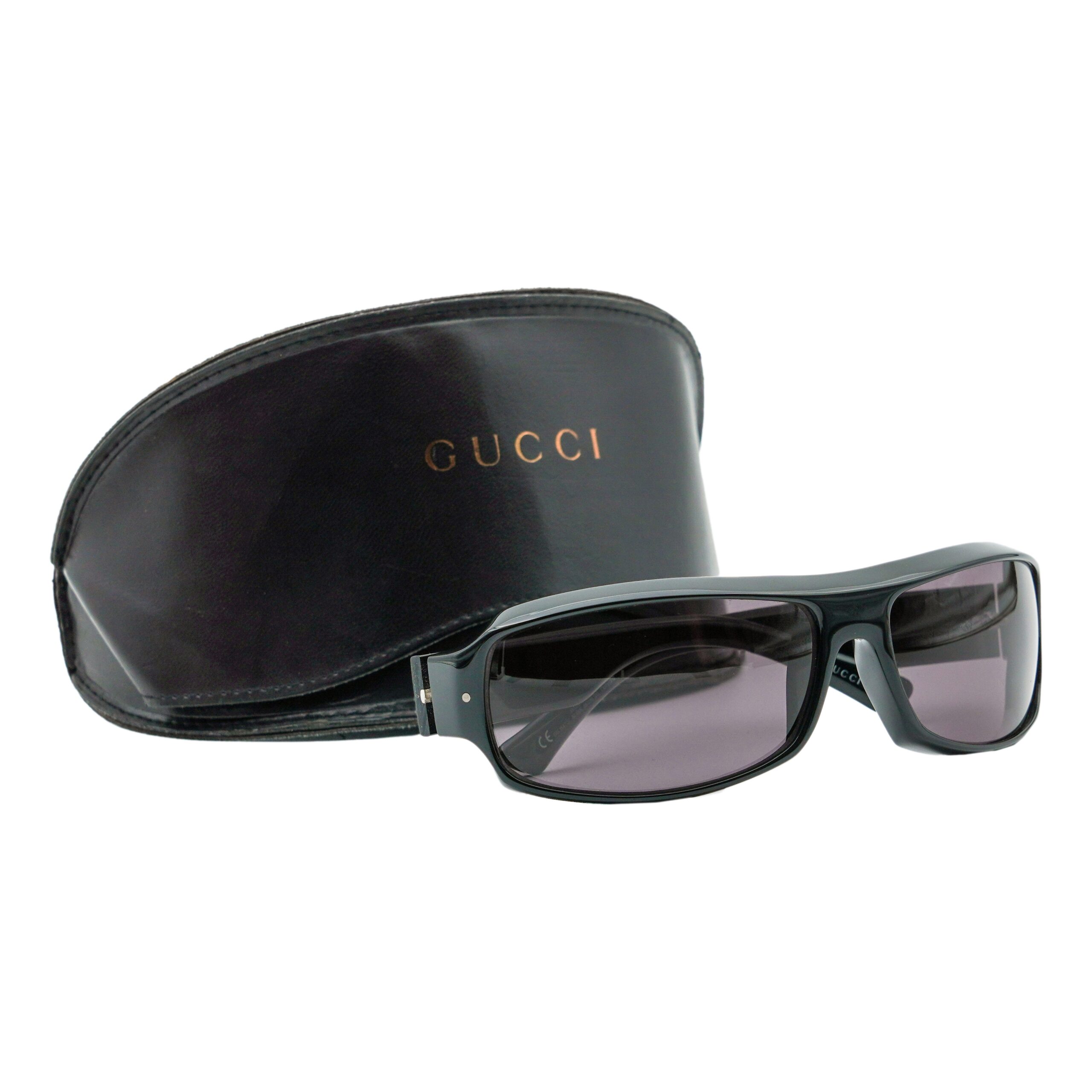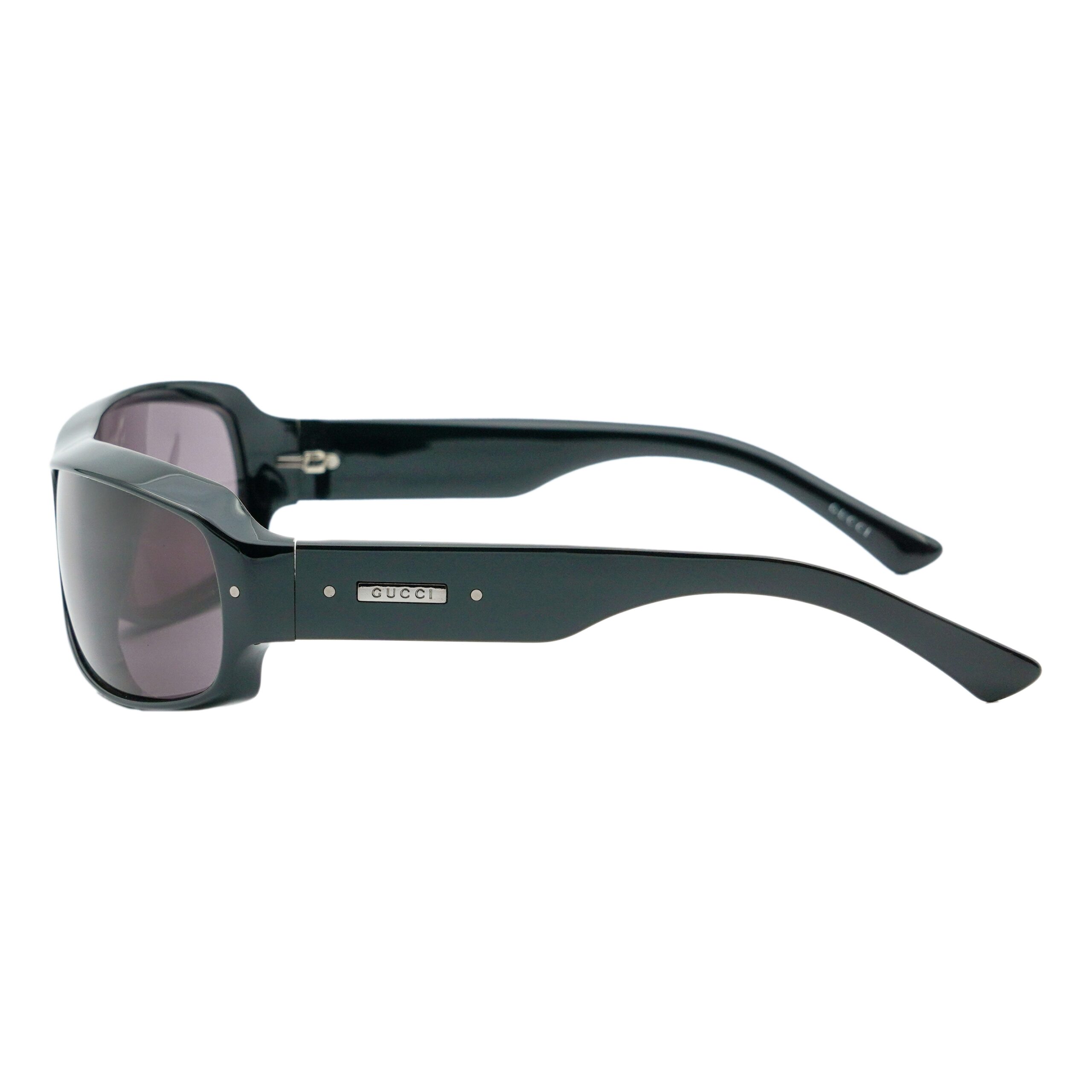 These Gucci sunglasses showcase a bold, masculine aesthetic with a sleek wraparound silhouette. Crafted in Italy from premium black acetate, the frames feature rectangular smoked lenses that deliver both style and UV protection. The wide temples are accented with subtle Gucci branding, embodying understated luxury. Perfect for everyday wear, these sunglasses combine comfort, durability, and timeless Italian craftsmanship.