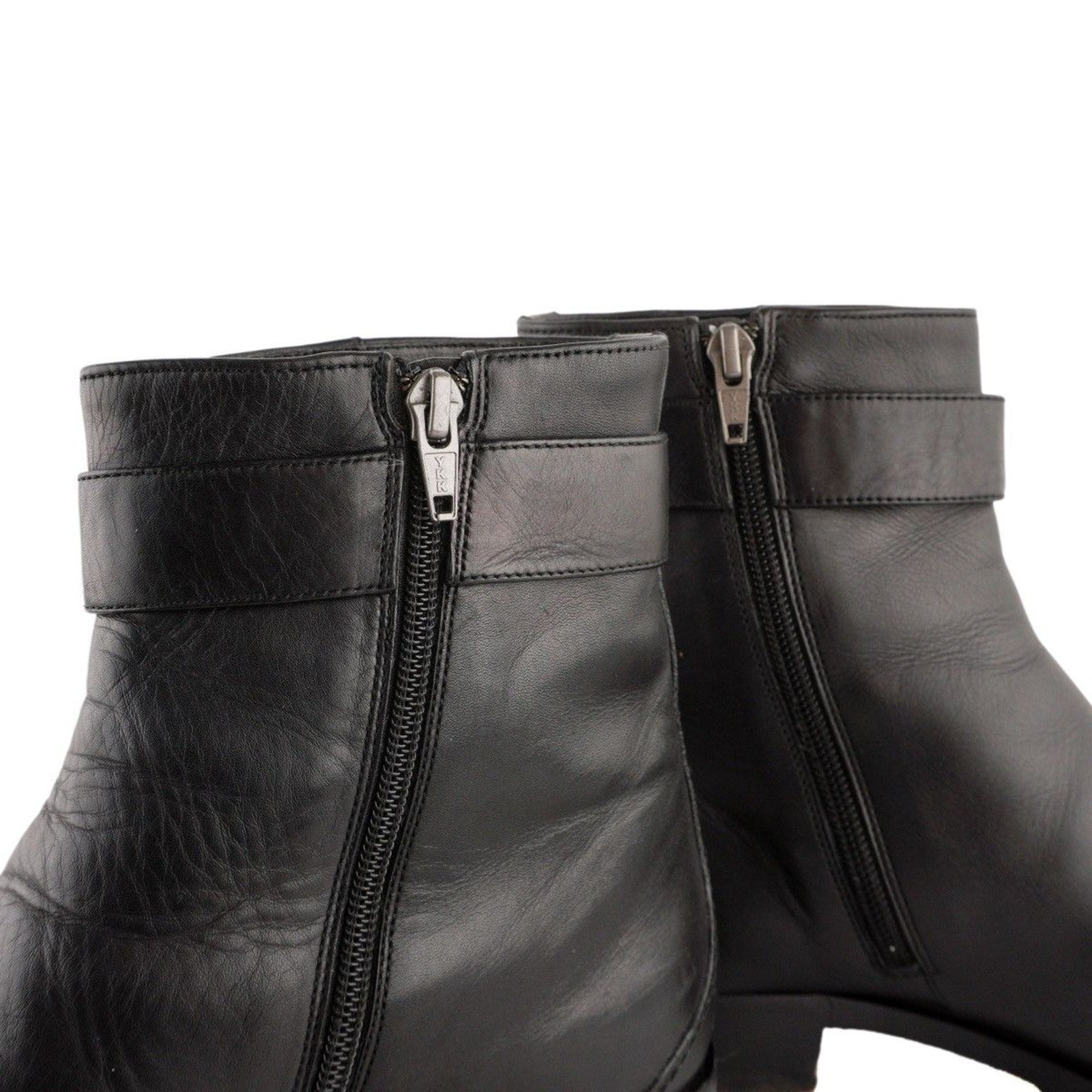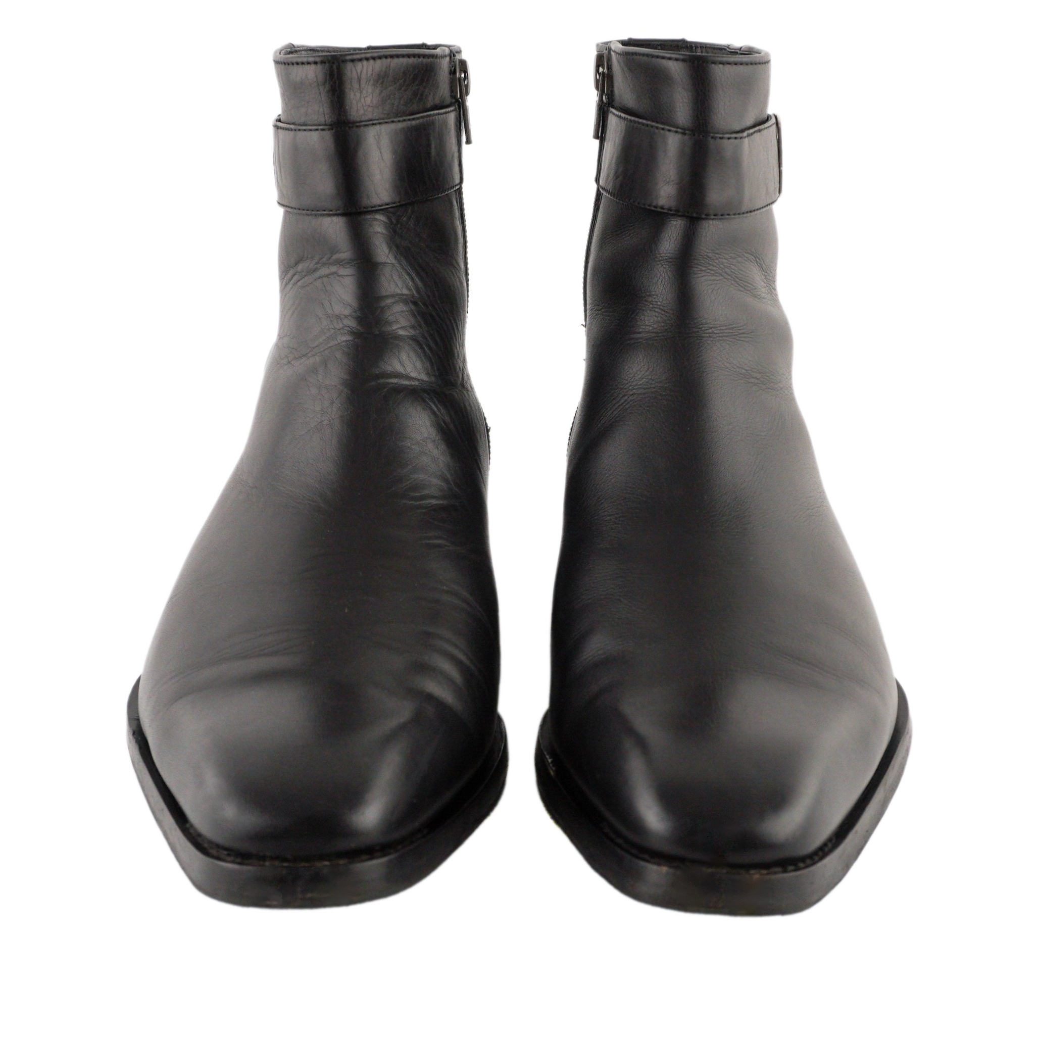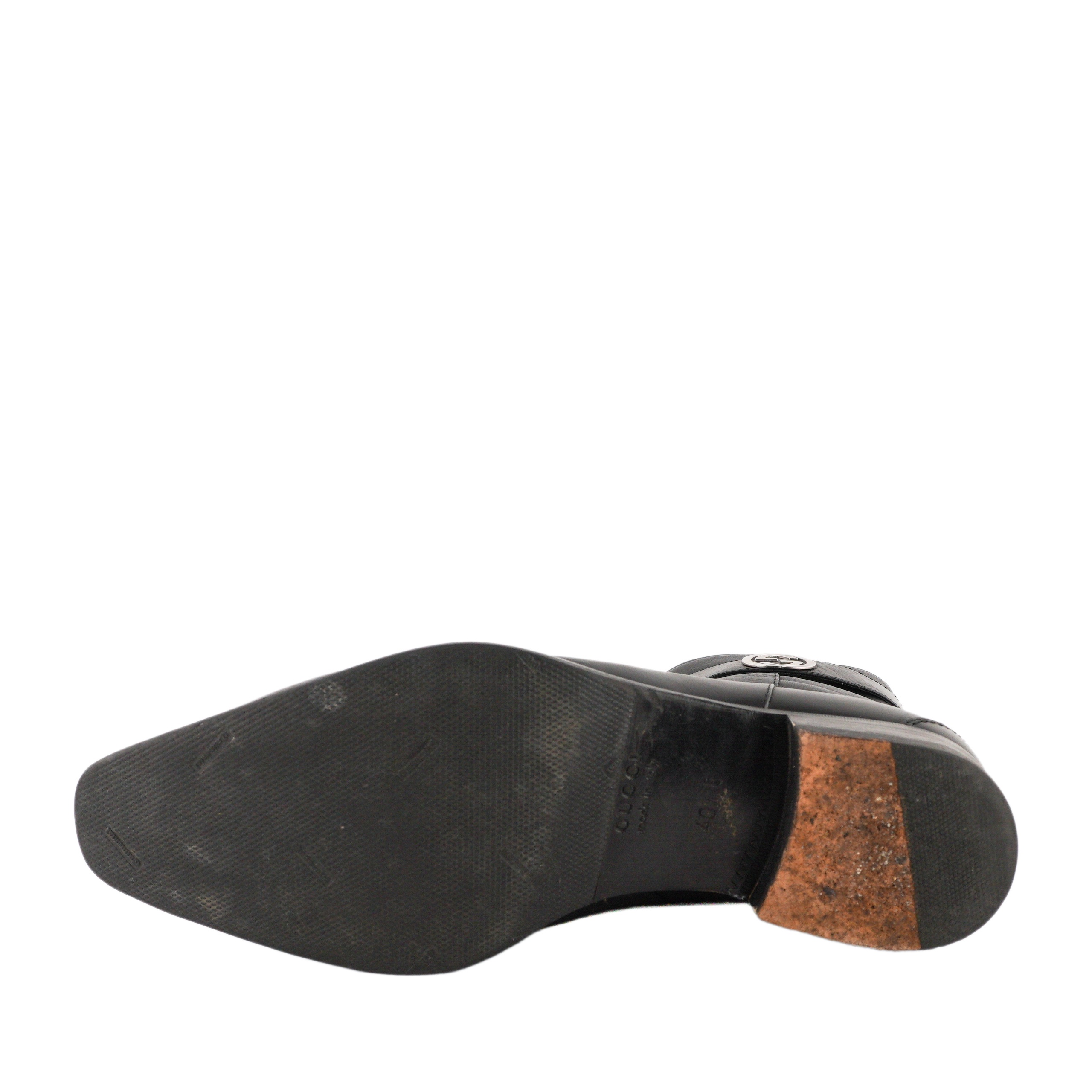 These Gucci leather ankle boots embody refined Italian craftsmanship and timeless luxury. Made from smooth black leather, they feature a sleek silhouette complemented by a signature silver-tone interlocking G logo strap around the ankle. The side zipper ensures easy wear, while the clean design makes them versatile enough for both formal and casual looks. A perfect choice for those who appreciate understated elegance with iconic branding.