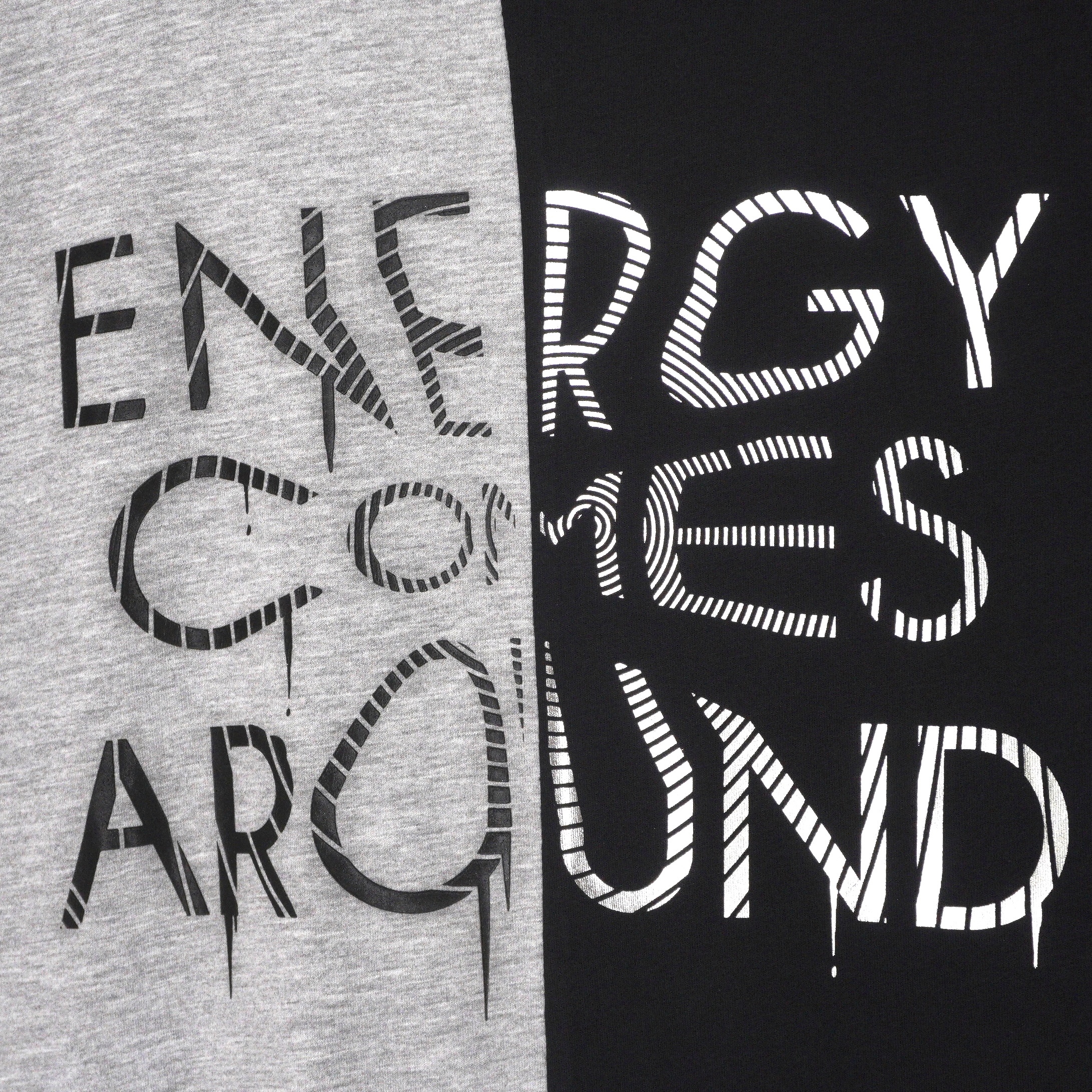 • Front graphic print with slogan "Energy Comes Around"