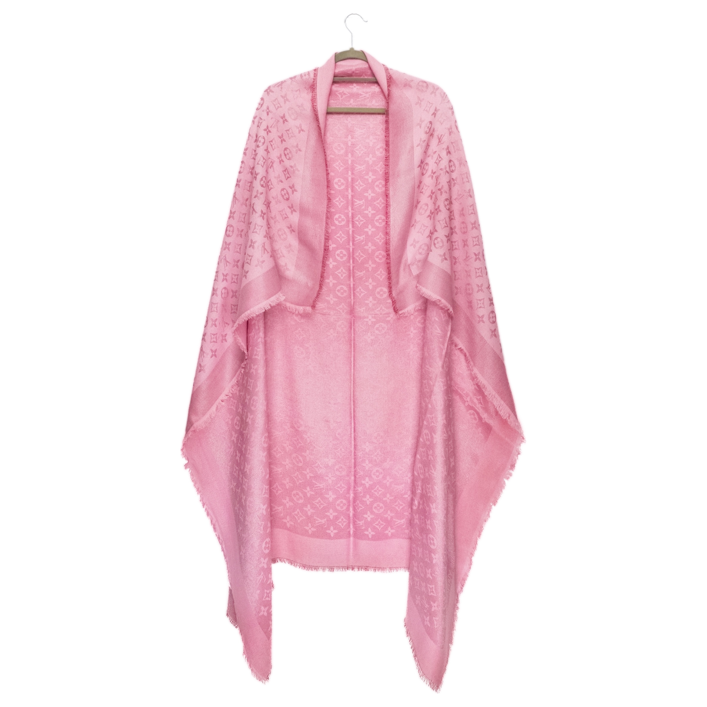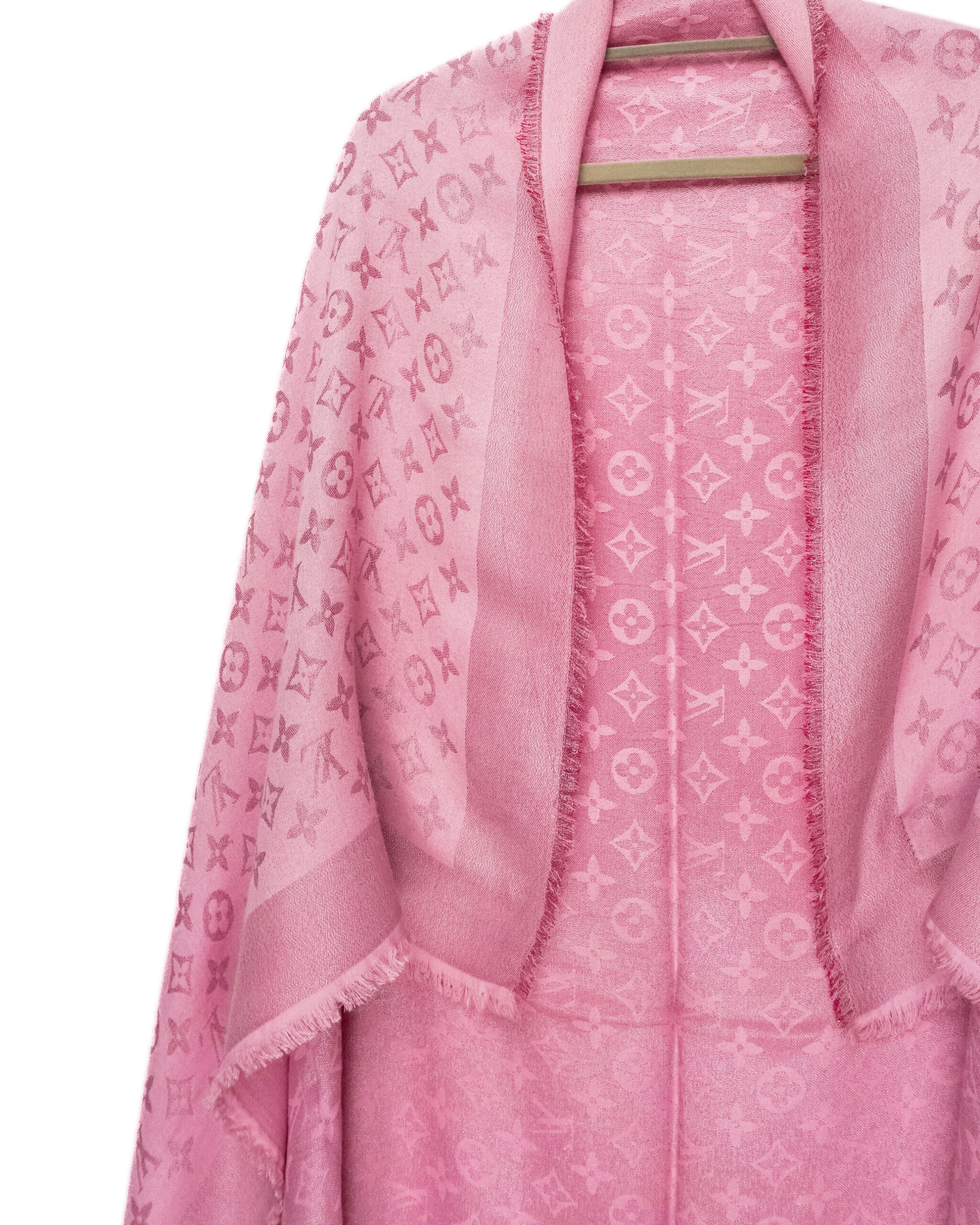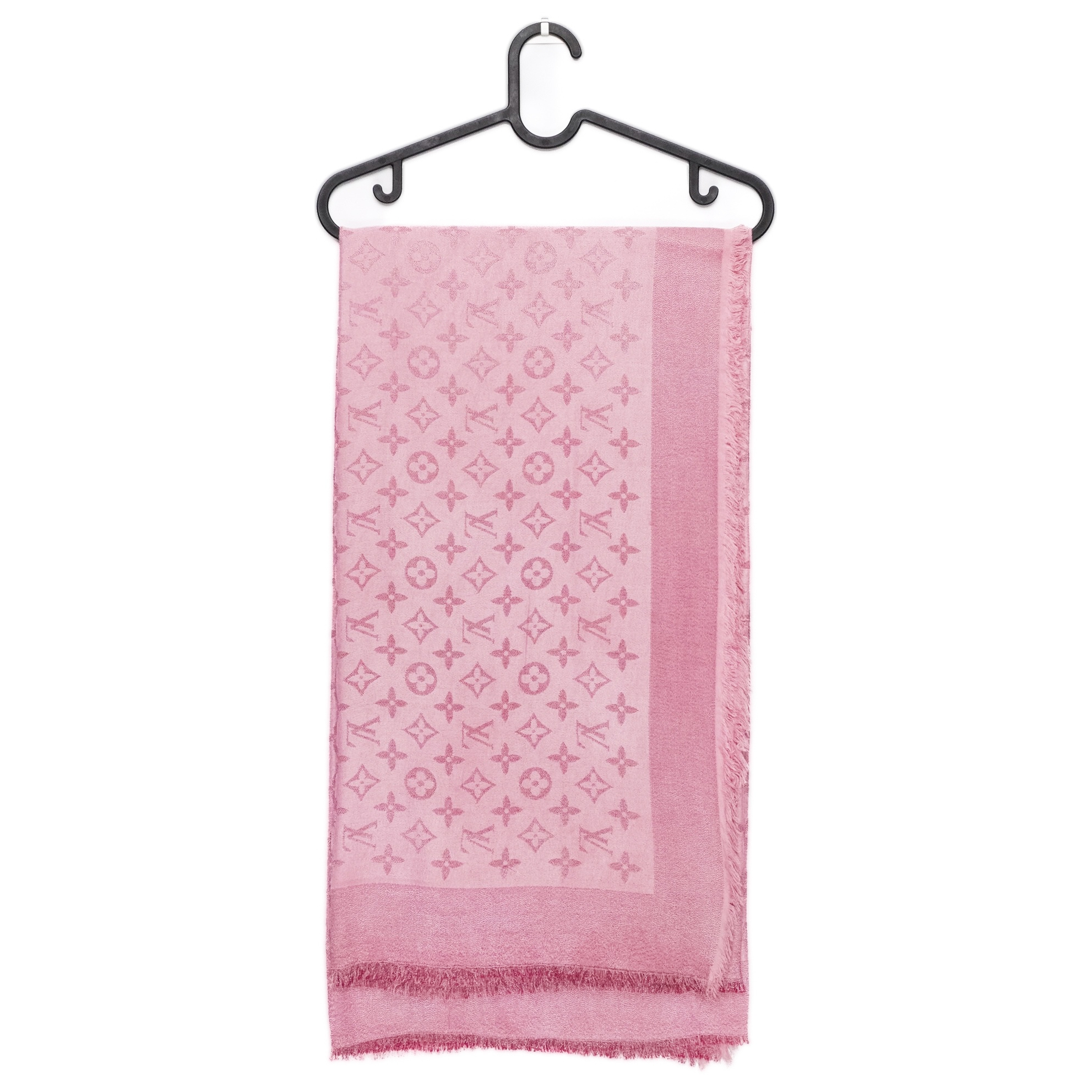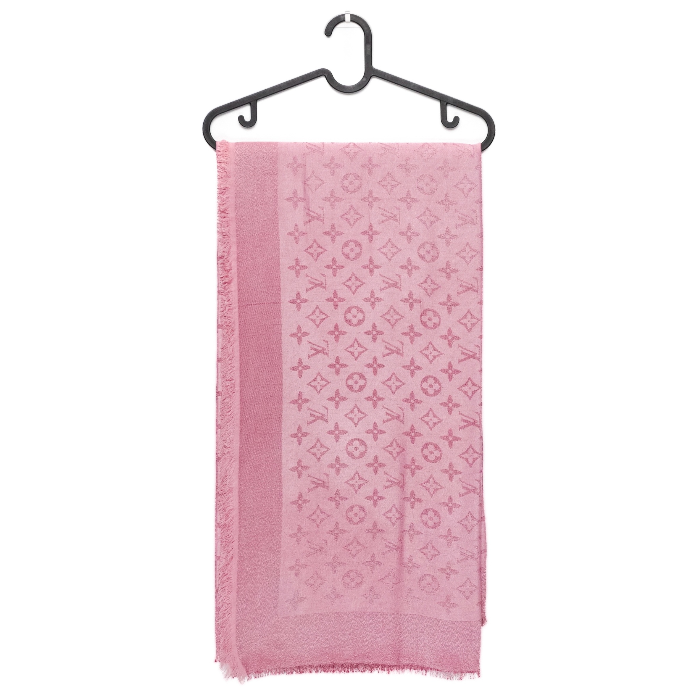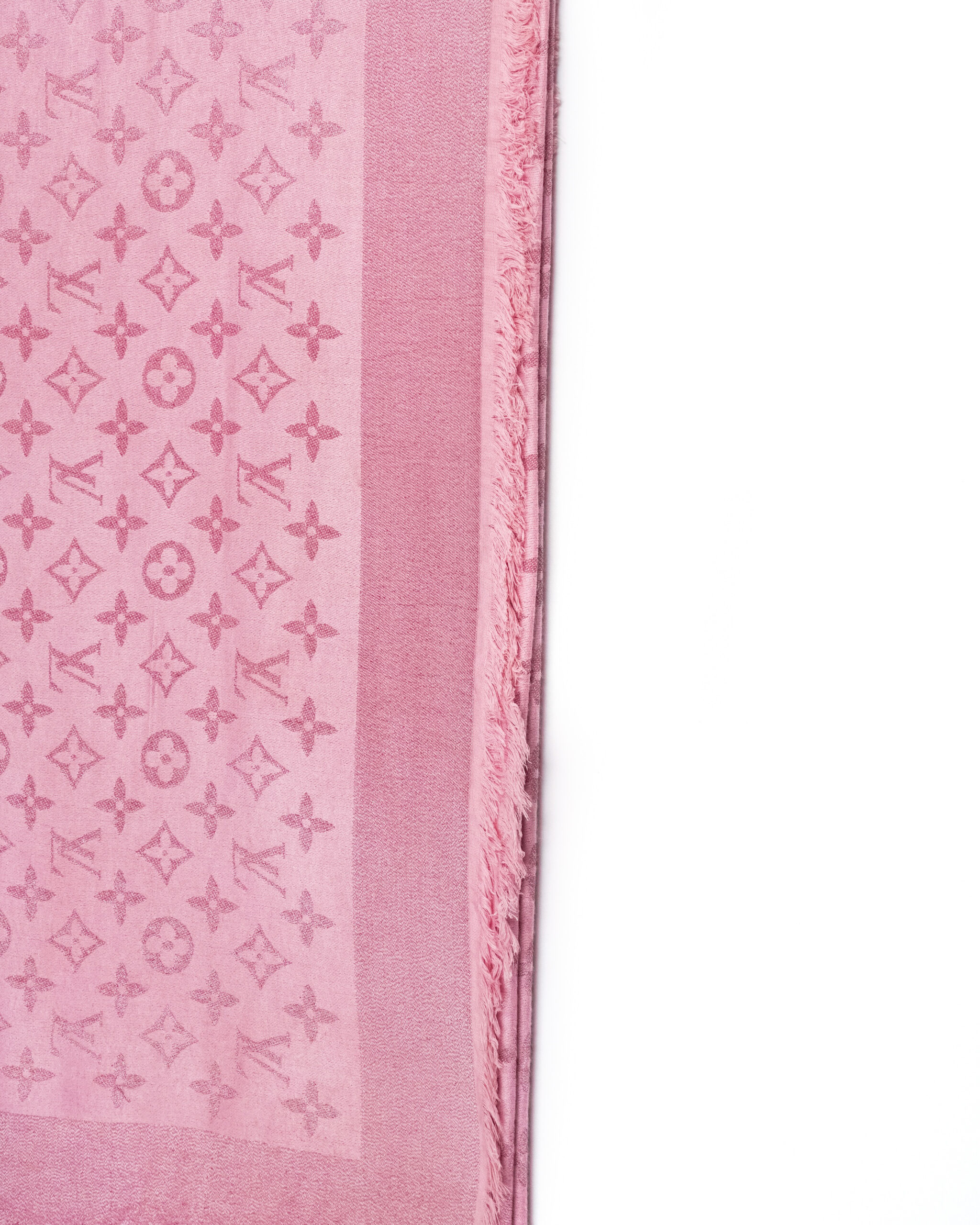 This elegant scarf is crafted from a luxurious silk and wool blend, offering a soft touch and refined sheen. The monogram jacquard pattern adds subtle texture and sophistication, while the light pink hue brings a feminine and delicate accent. Finished with lightly fringed edges, it’s perfect for both casual layering and polished looks throughout the year.