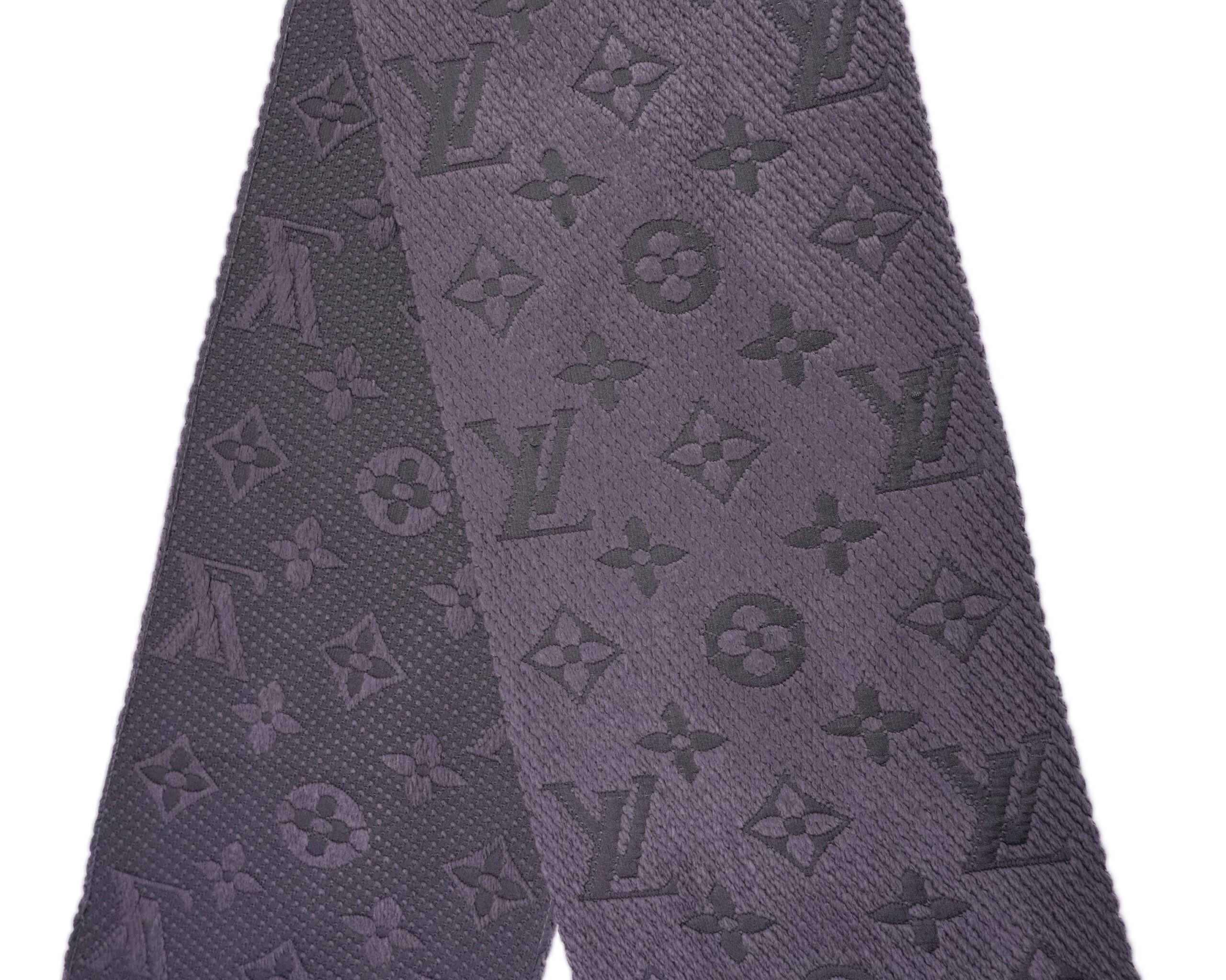 This elegant scarf embodies timeless sophistication and refined craftsmanship. Featuring a signature monogram pattern woven into a soft textured fabric, it offers both warmth and style. The deep charcoal hue adds a versatile touch, making it suitable for pairing with casual or formal attire. The tactile weave and fringed edges give it a luxurious, cozy feel that stands out in any wardrobe.
