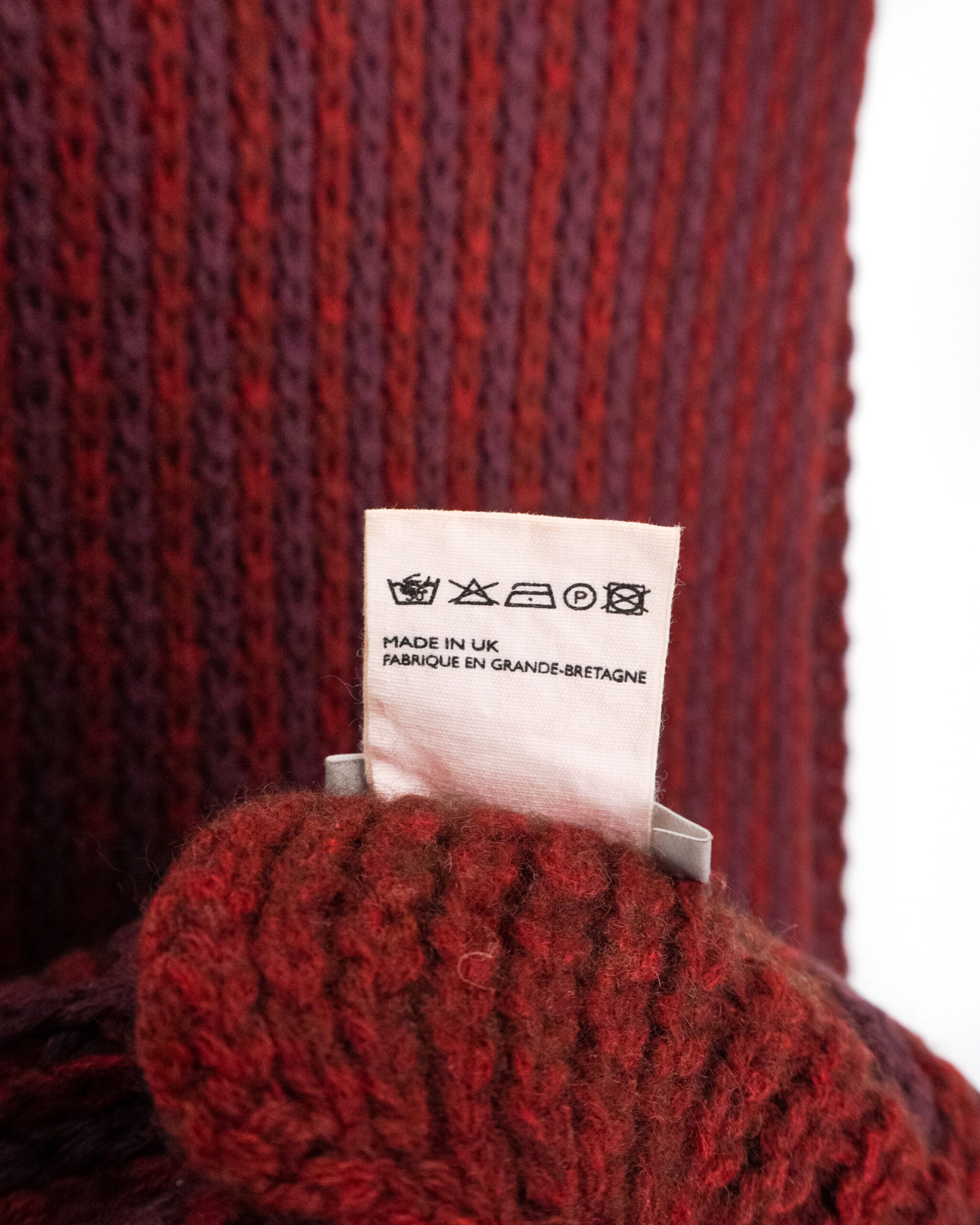 This Margaret Howell scarf is a beautifully crafted cold-weather essential. Made in the UK from a luxurious blend of yak and merino wool, it offers exceptional softness, warmth, and durability. The textured knit and rich red gradient give it a unique character, while the long, generous silhouette allows for versatile styling. A refined accessory for those who appreciate high-quality materials and understated design.