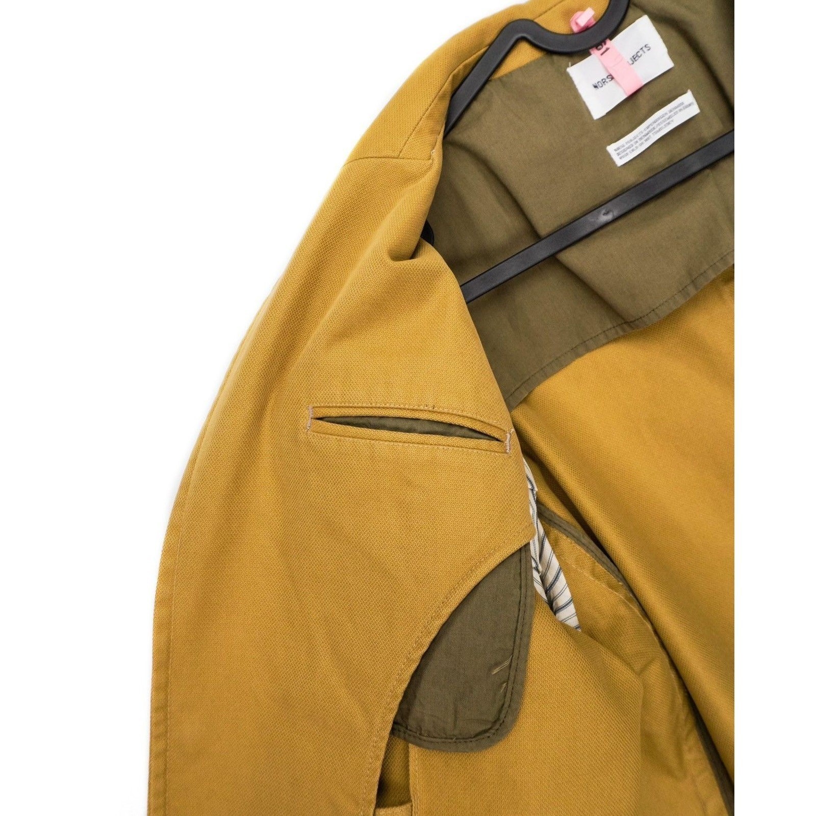 This Norse Projects blazer offers a clean, utilitarian interpretation of a classic wardrobe essential. Crafted from durable cotton canvas, it features a structured yet relaxed silhouette in a rich mustard tone. The unlined interior highlights its workwear-inspired construction, while the large patch pockets and minimal detailing keep the look modern and versatile. A perfect piece for effortless everyday styling.
