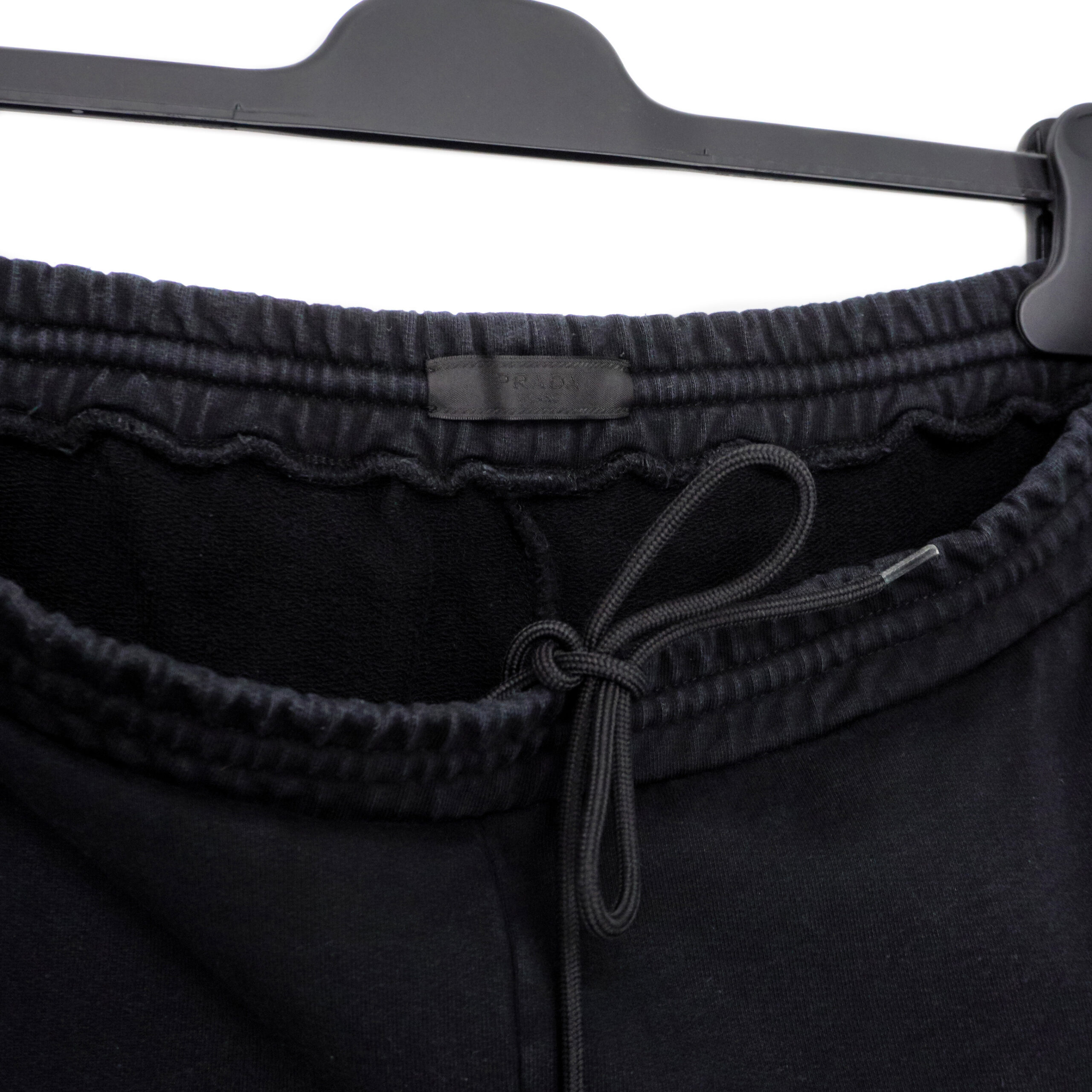 Prada presents a timeless take on loungewear with these sleek black sweatpants, balancing casual ease and refined detail. Crafted in Romania from soft cotton jersey, they feature a relaxed silhouette with an elasticated waistband and drawstring fastening. A signature Prada red logo tab adorns the back pocket, adding a subtle yet recognizable accent. Ribbed cuffs complete the design, ensuring a clean and modern finish.