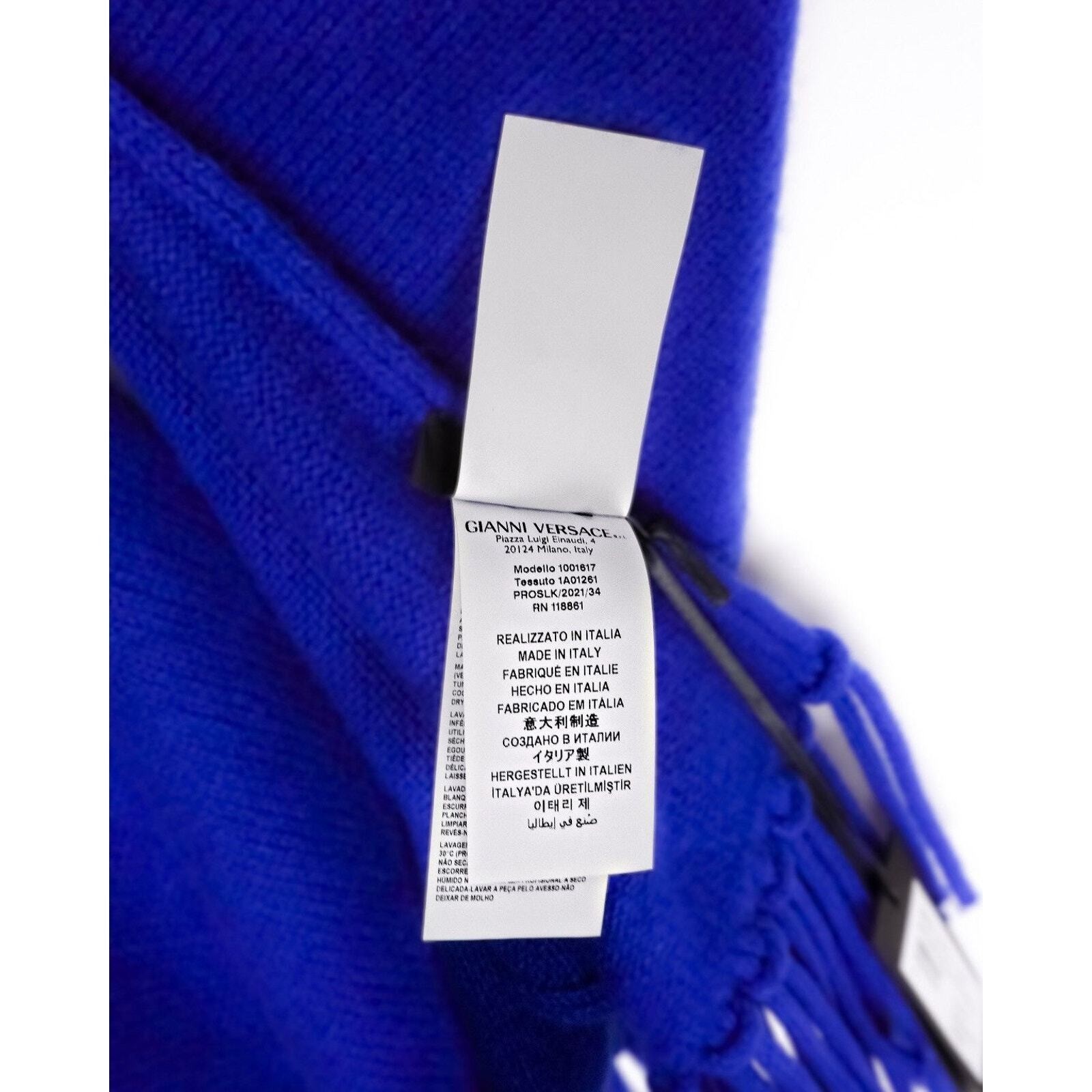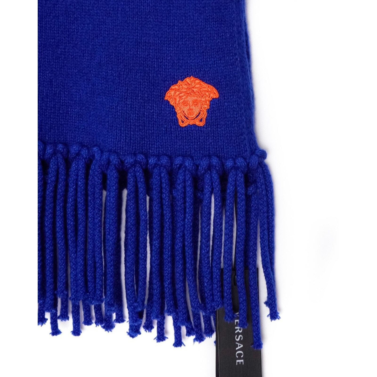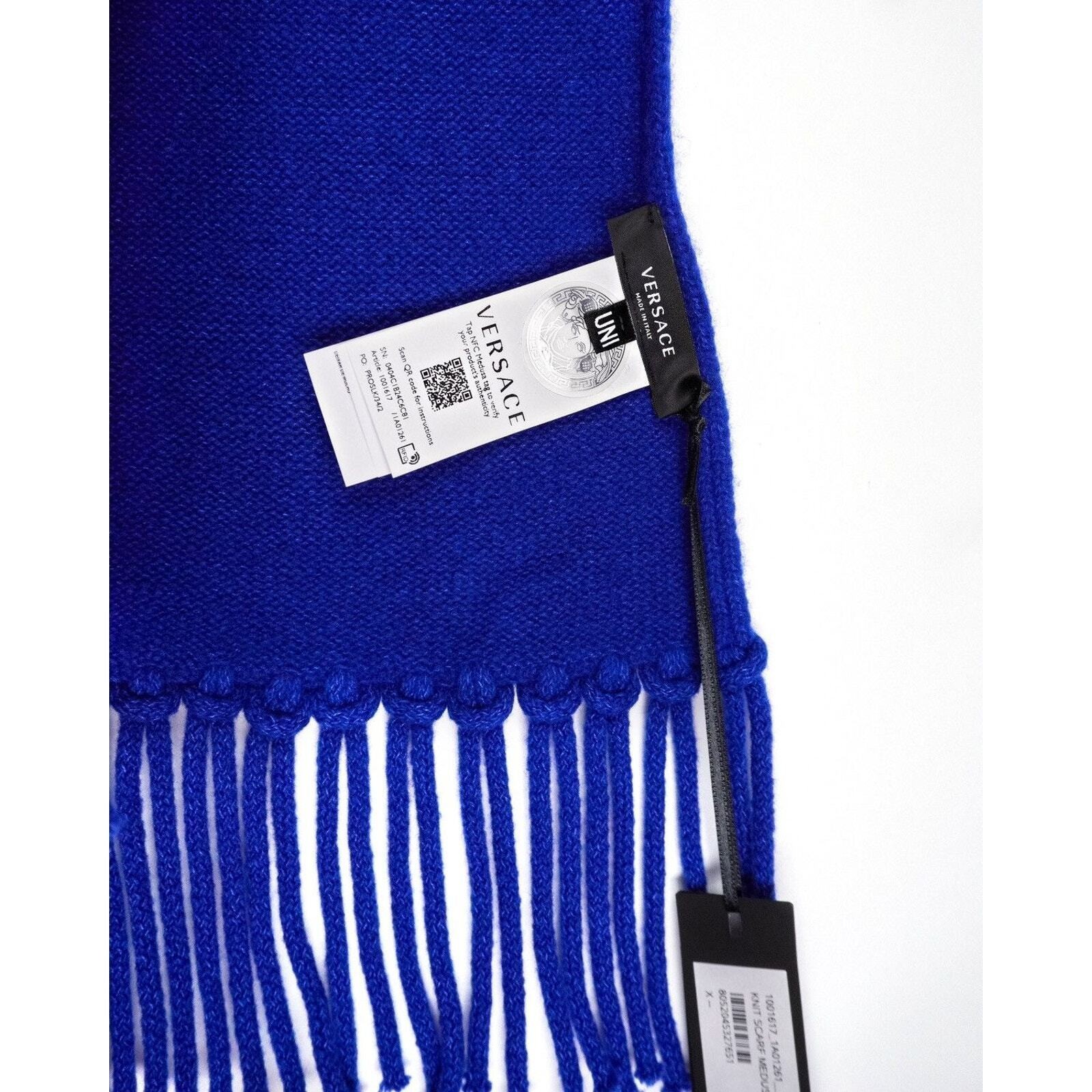 Versace Medusa Logo Cashmere Wool Blue Long Scarf