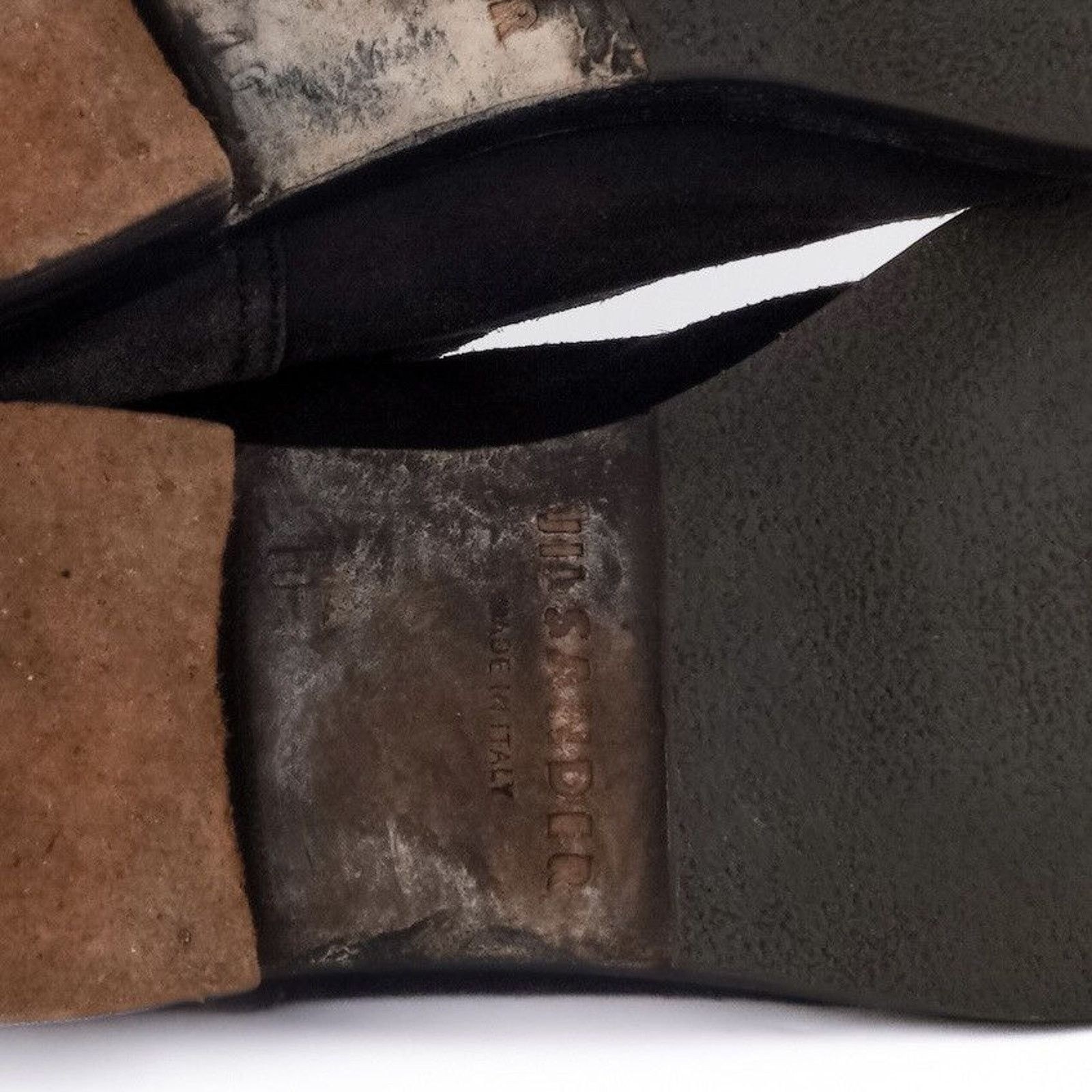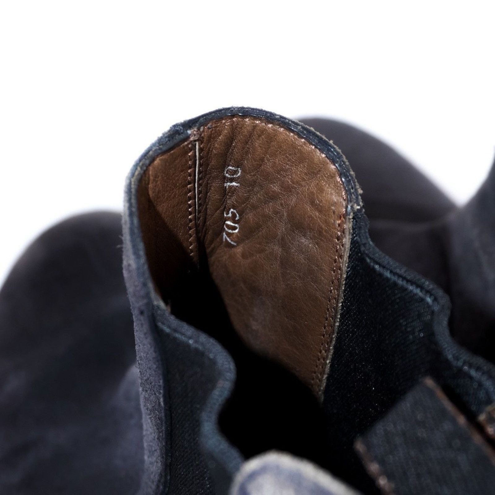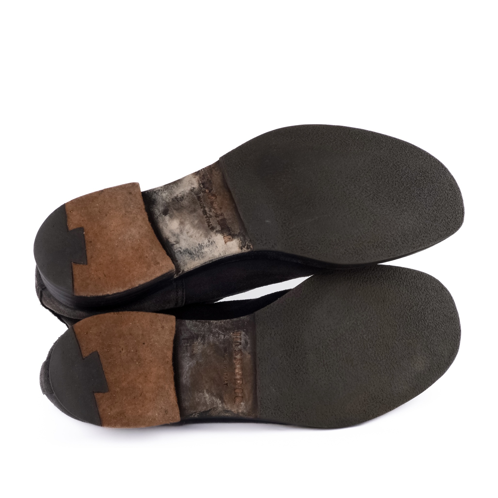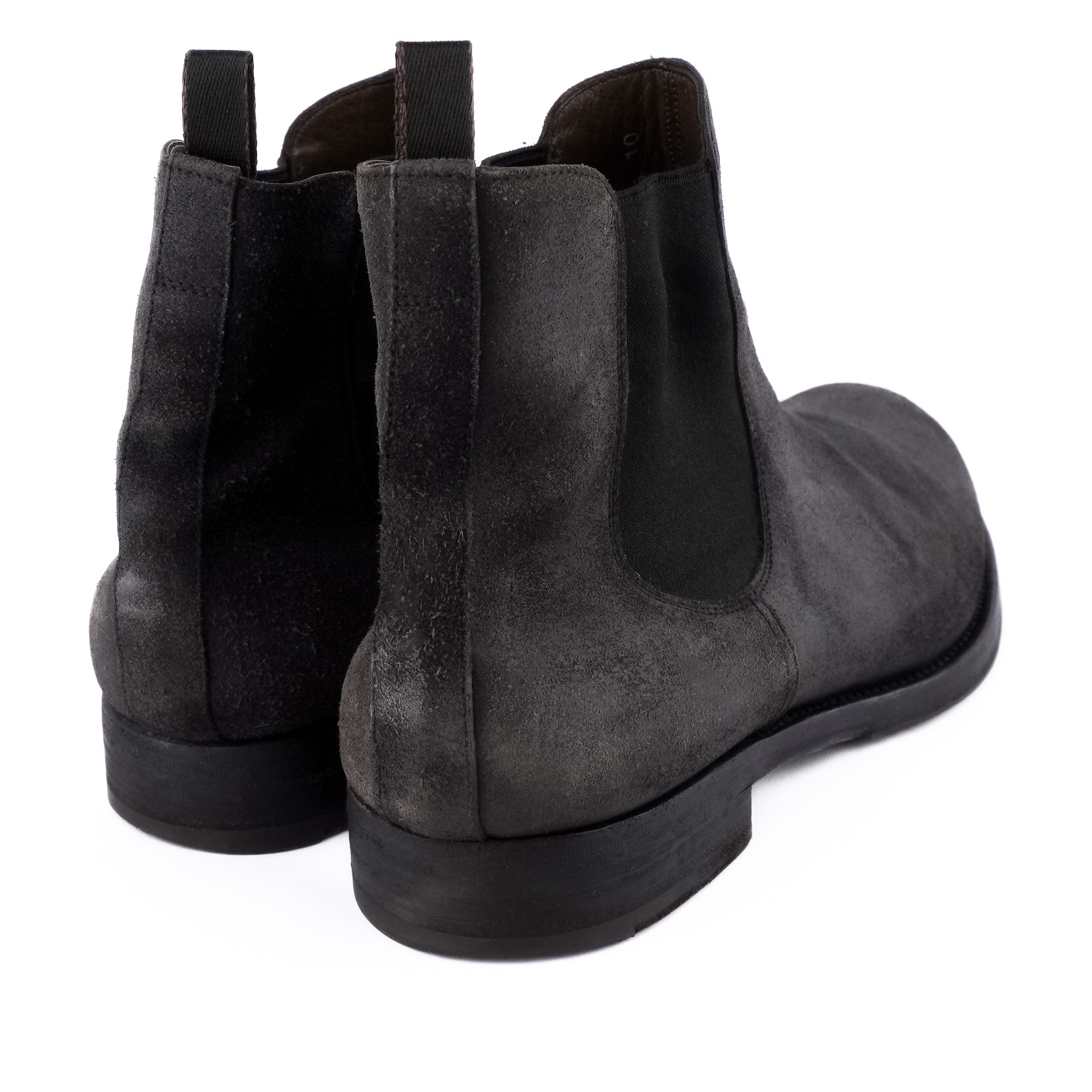 These Jil Sander Chelsea boots offer a refined take on a timeless classic. Crafted from soft black suede, they feature a minimalist silhouette with elastic side panels and pull tabs for easy wear. The slightly weathered suede adds character, while the clean design ensures effortless styling with both casual and tailored looks. A perfect choice for those who appreciate understated luxury and modern craftsmanship.