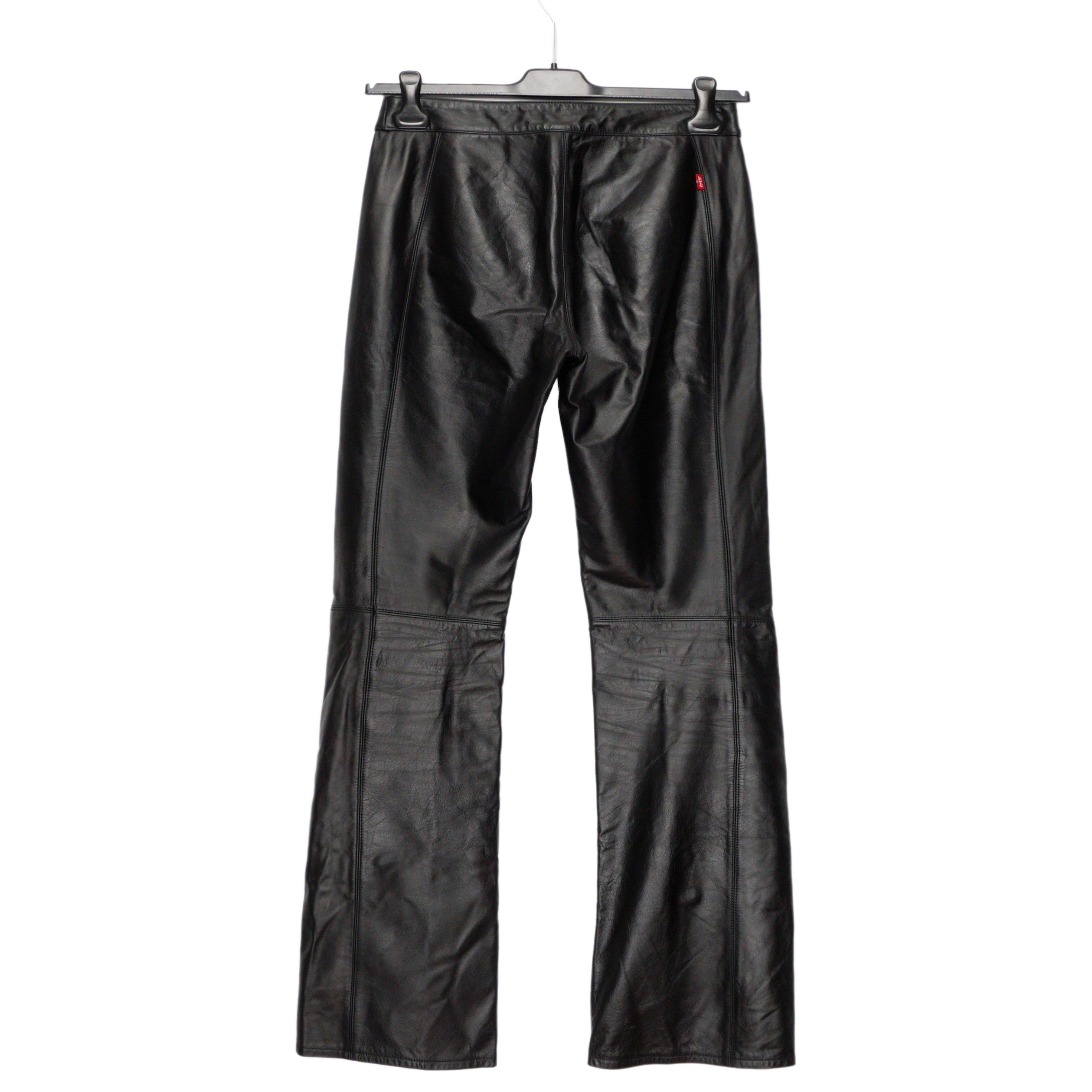 These Levi’s leather pants are a bold vintage statement piece crafted in supple genuine leather. Featuring a straight-leg cut with subtle flare, they channel a retro rock-inspired aesthetic while staying rooted in the brand’s iconic heritage. The design is finished with a metal zip fly, branded button closure, and the signature red Levi’s tab for authentic detail.
